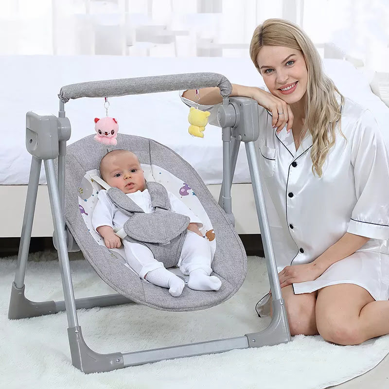 [Refurbished] StarAndDaisy Baby Swing Electric Cradle Rocking Chair with seat Recline for 0-12 Months (Grey)
