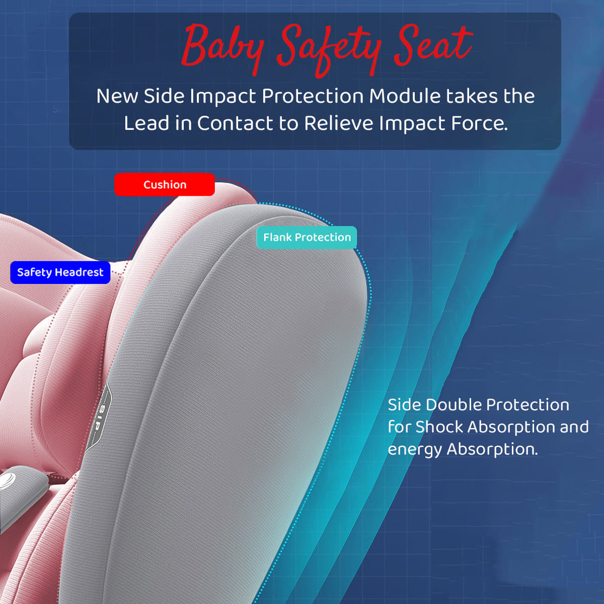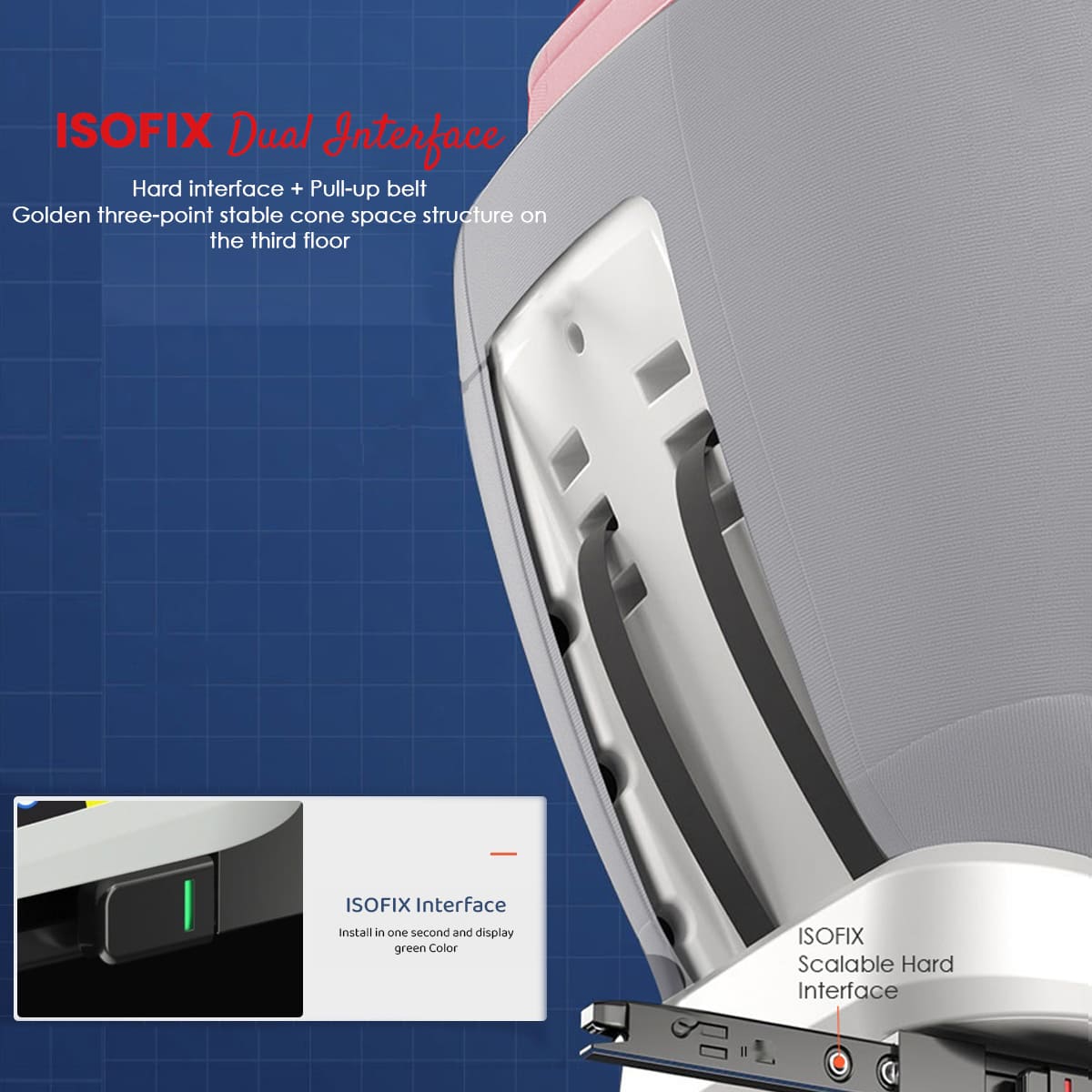 4 Layers of Anti-Collision Protection (Side Protection): The Isofix kids car seat features additional side protection, which absorbs energy in the event of a collision, protecting the child’s head and shoulders. Parents can regulate the angle of incline of the kid’s car seat to suit the bench seat of the car.