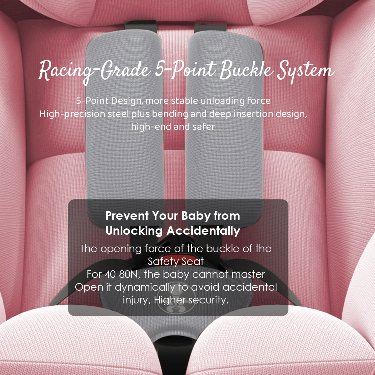 5-Point Safety Harness: The 5-Point Adjustable Safety Harness secures baby to the seat firmly. A 5-point safety seat belt minimizes the risk of hurting the baby by evenly distributing the baby’s head, arms, and legs