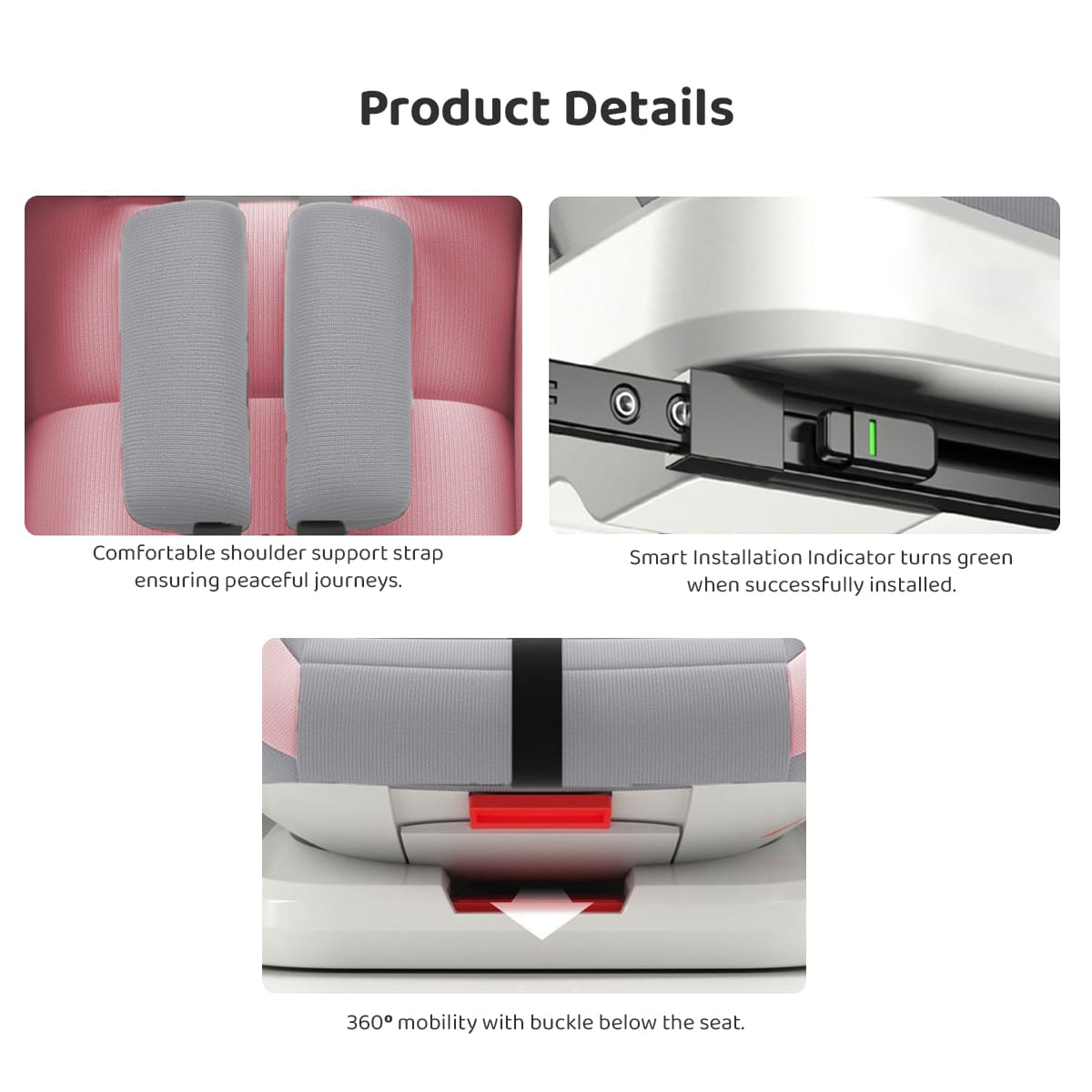 360 Free Rotation & One-Click Easy Operation: Fixed with a stable base that provides full flexibility with its 360-degree swiveling function, easier to set the Isofix kids car seat to face forward and backward for taking care of the baby. Meanwhile, it’s convenient for parents to take or sit the baby while rotating it towards the door.