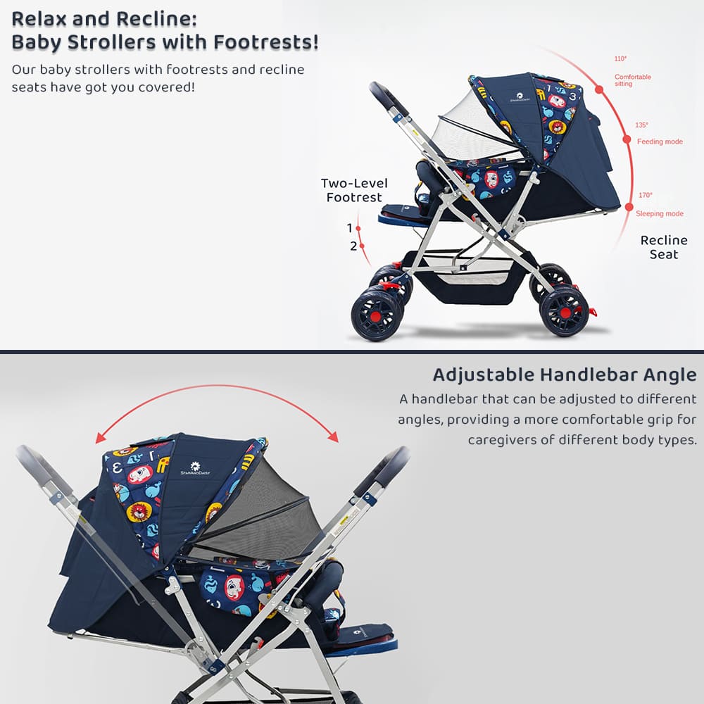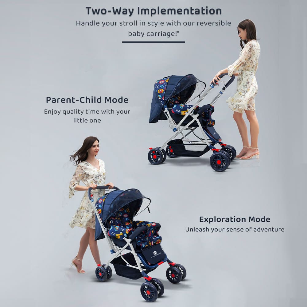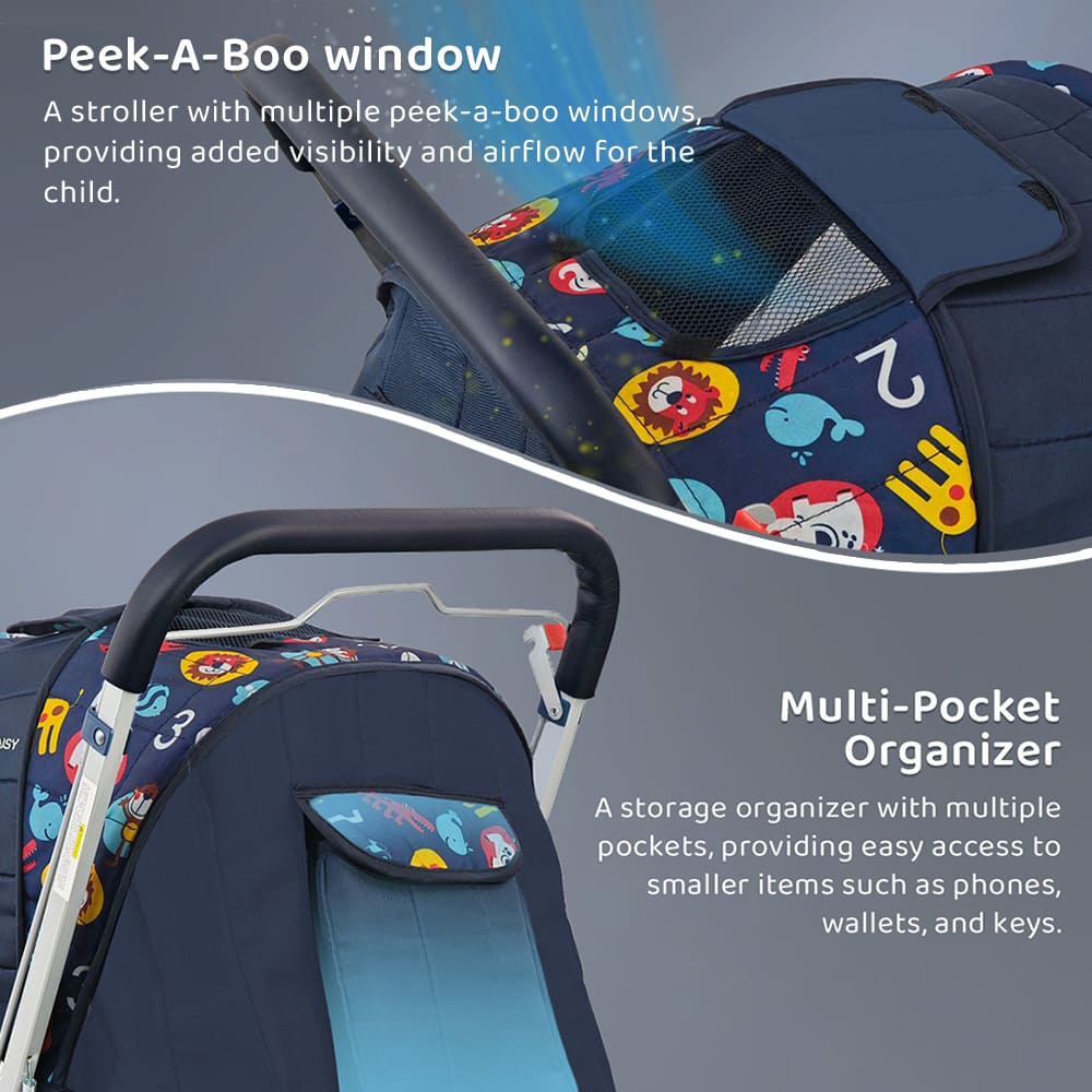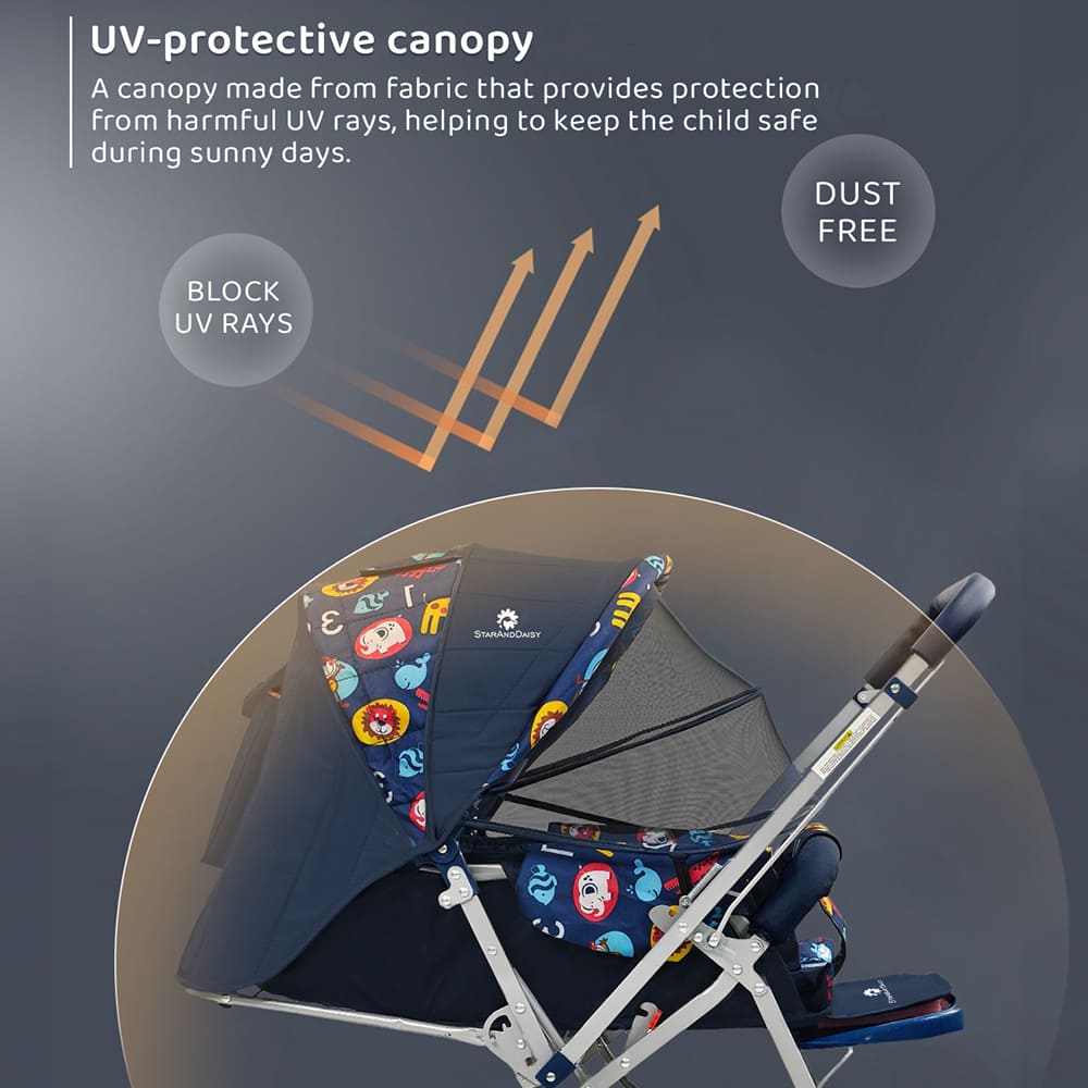 This stroller comes with many helpful features. It has an extended mosquito net to keep bugs away, ensuring your baby stays safe and comfortable outdoors. The dual-facing seat design allows your baby to face you for bonding time or face forward to explore the world. A peek-a-boo window on the canopy lets you check on your baby without disturbing them.