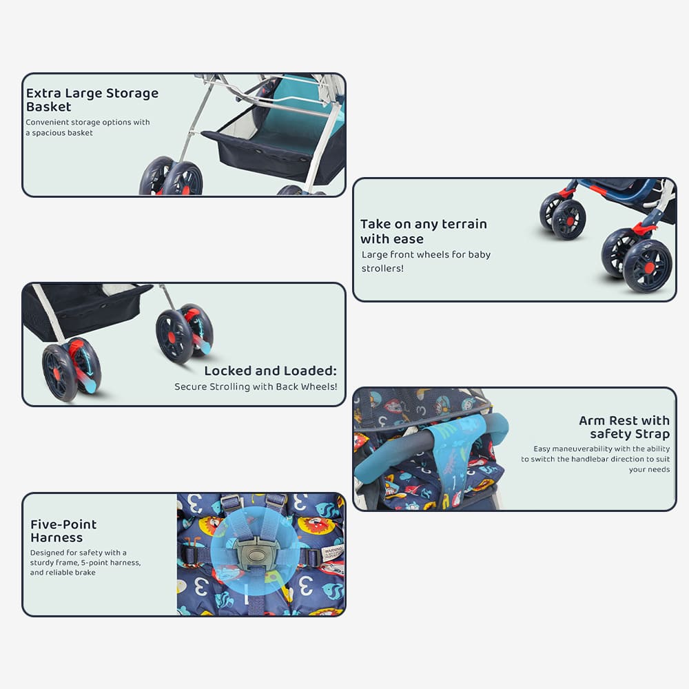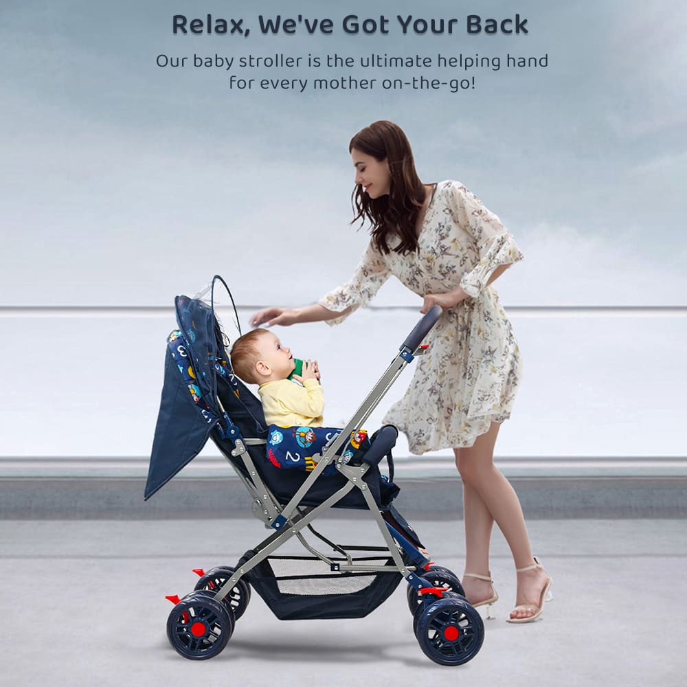 The stroller is lightweight yet strong, making it easy to push and carry. The smooth wheels work well on all surfaces, from pavements to parks. The adjustable seat lets your baby sit or recline as needed, and the safety harness keeps them secure. There’s also a spacious basket for carrying essentials like diapers, bottles, and toys. With its easy folding design, this stroller is simple to store and travel with. It’s a must-have for every parent who wants safety, comfort, and convenience on the go.