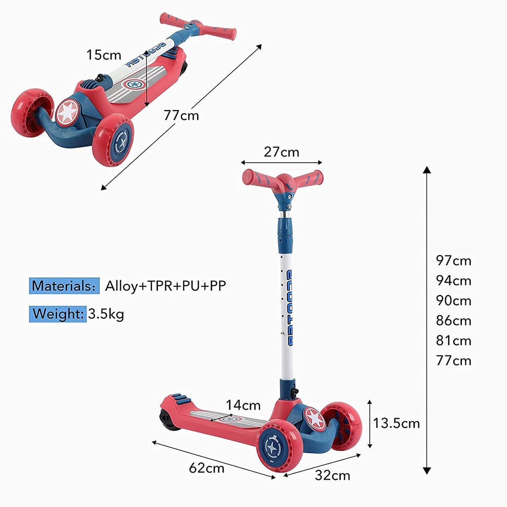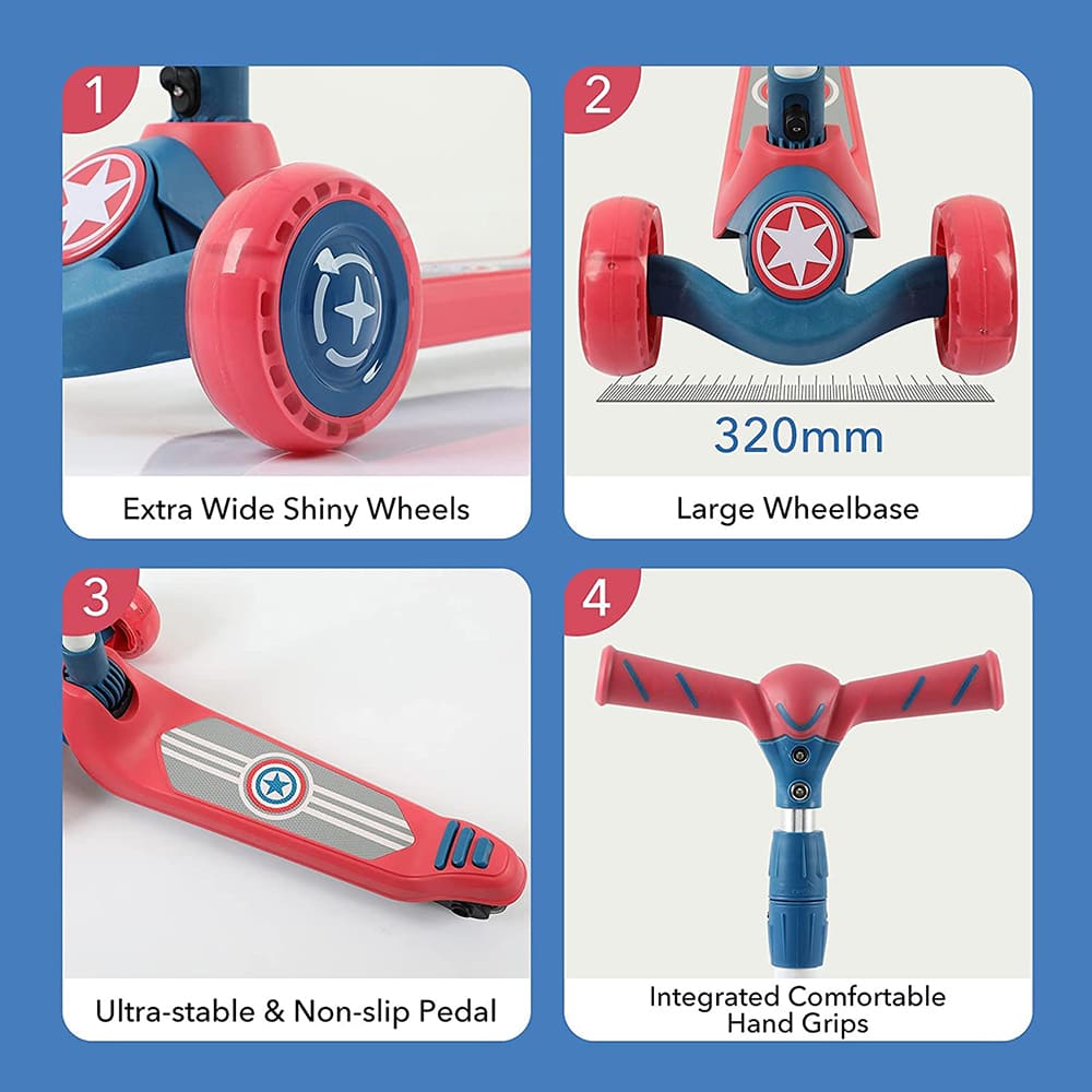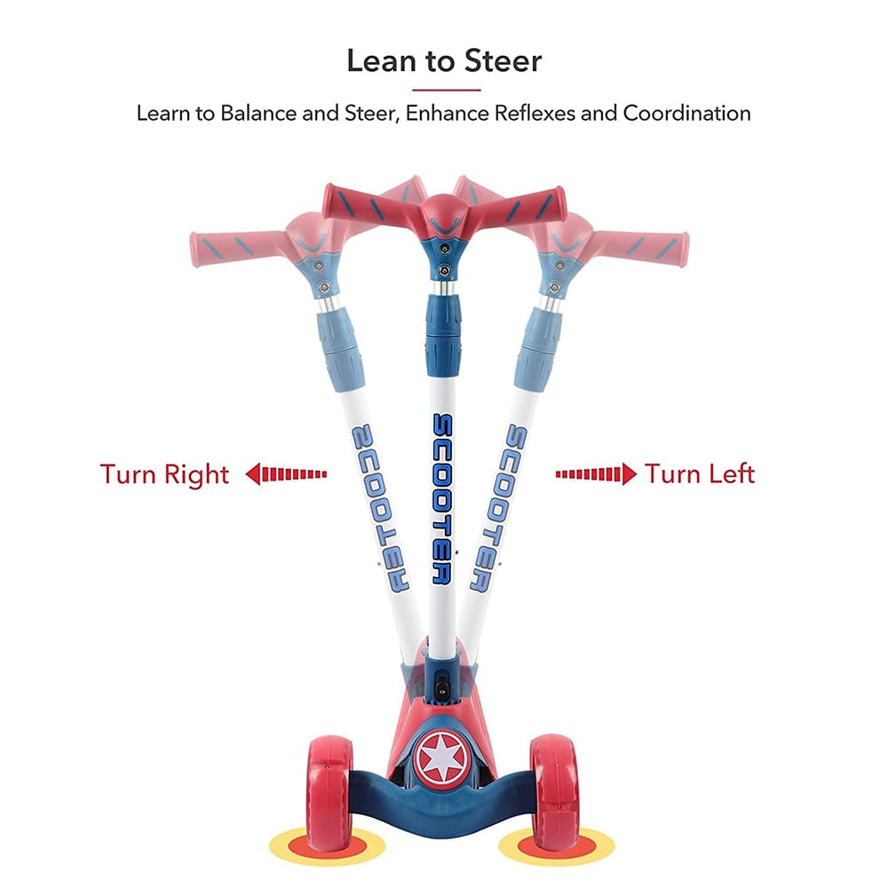 [Refurbished] StarAndDaisy Glider Toddler Scooter for Kids Ages 3-12 Years Old Boy Girl with 3 Wheel LED Lights, Extra-Wide Childrens Foldable Kick Scooter Kids Ages 3-12 with 4 Adjustable Height and Lean-to-Steer (BLUE RED)
