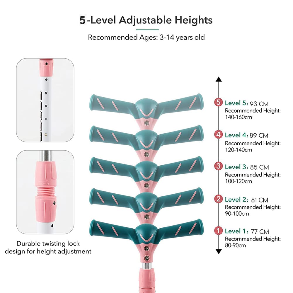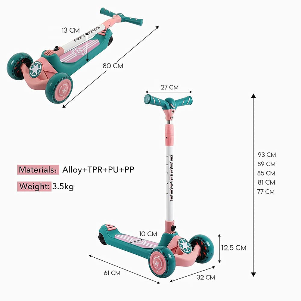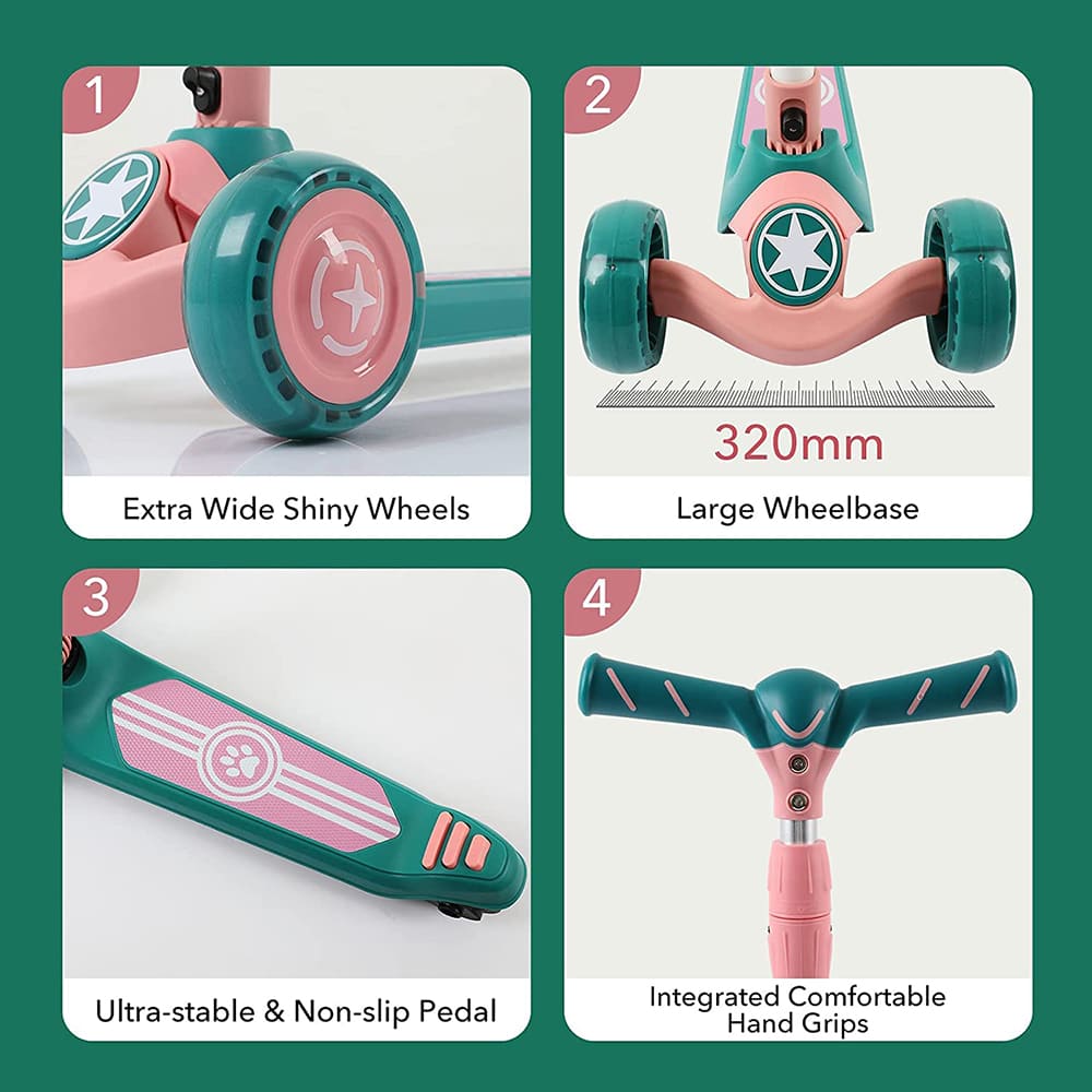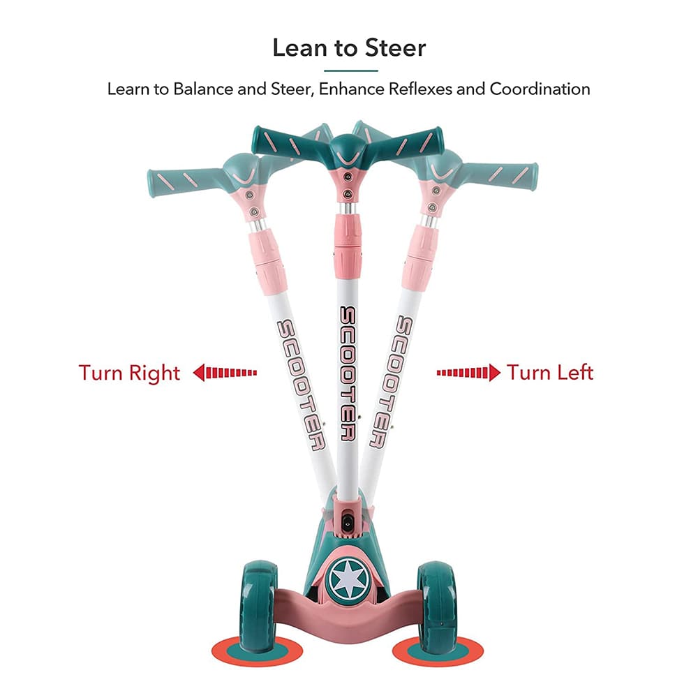 [Refurbished] StarAndDaisy Glider Toddler Scooter for Kids Ages 3-12 Years Old Boy Girl with 3 Wheel LED Lights, Extra-Wide Childrens Foldable Kick Scooter Kids Ages 3-12 with 4 Adjustable Height and Lean-to-Steer (PINK GREEN)