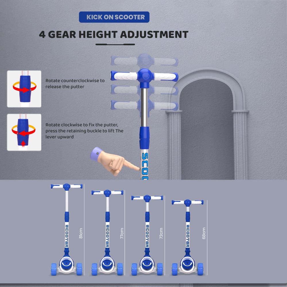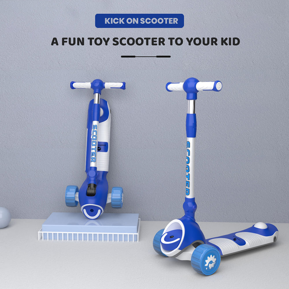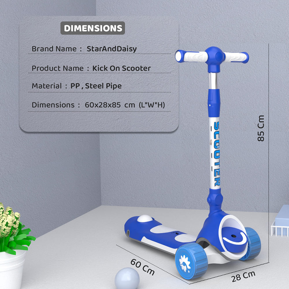 [Refurbished] StarAndDaisy Kick On Toddler Scooter for Kids Ages 3-10 Years Old Boy Girl with 3 Wheel LED Lights, Extra-Wide Childrens Foldable Kick Scooter Kids Ages 3-10 with 4 Adjustable Height and Lean-to-Steer (Blue)