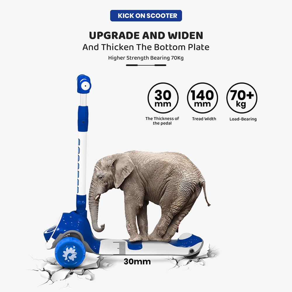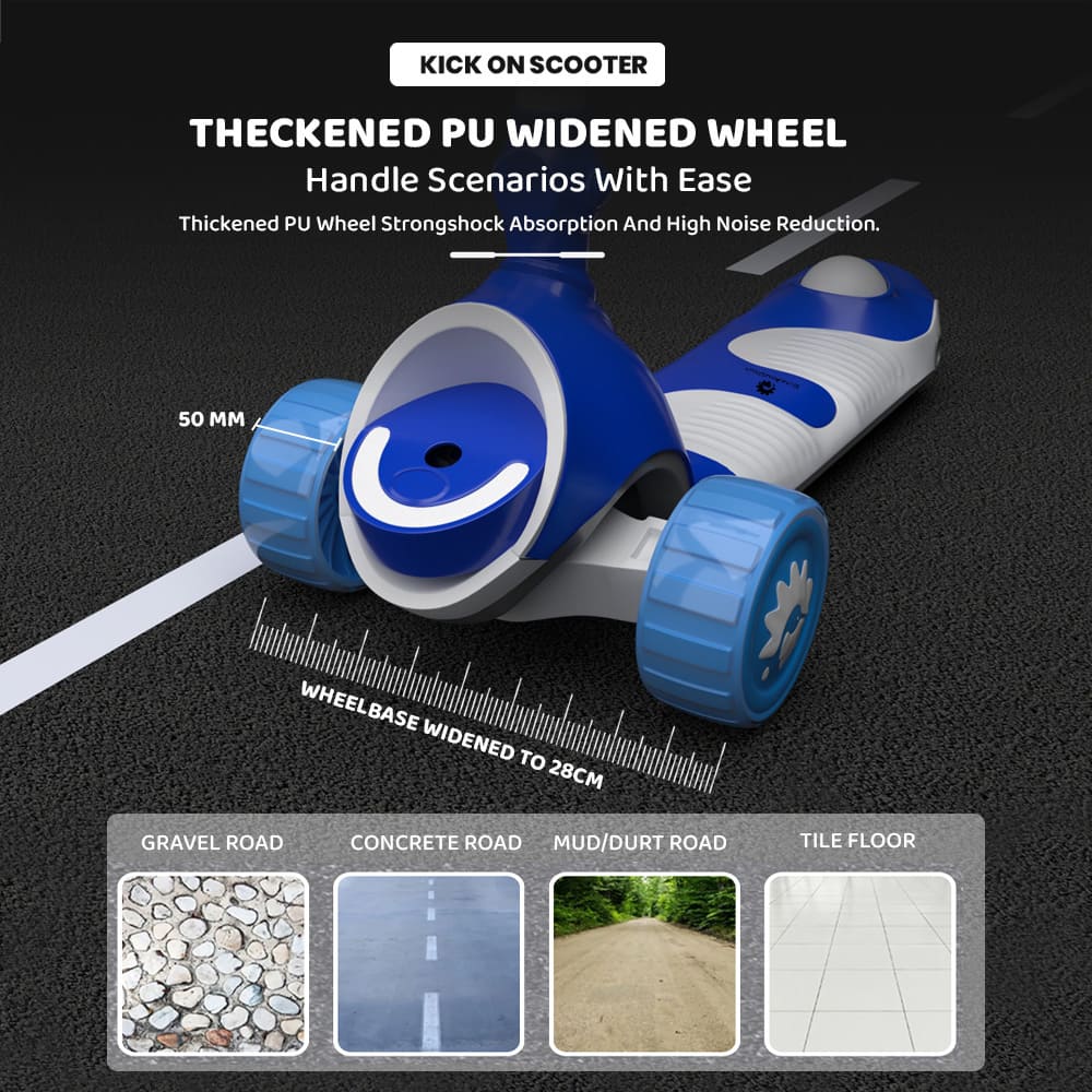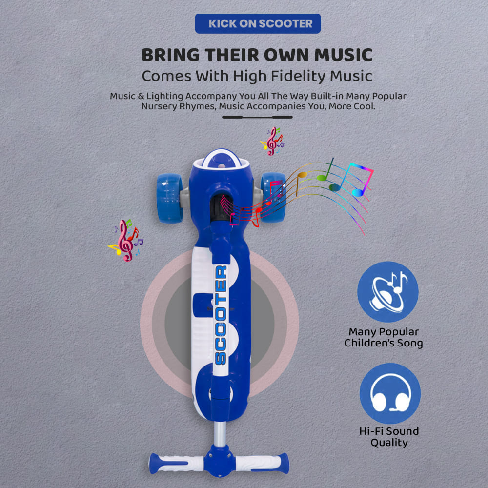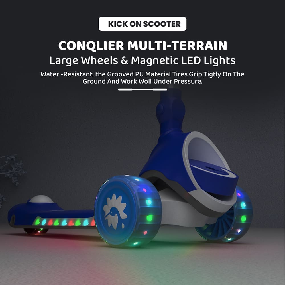 [Refurbished] StarAndDaisy Kick On Toddler Scooter for Kids Ages 3-10 Years Old Boy Girl with 3 Wheel LED Lights, Extra-Wide Childrens Foldable Kick Scooter Kids Ages 3-10 with 4 Adjustable Height and Lean-to-Steer (Blue)