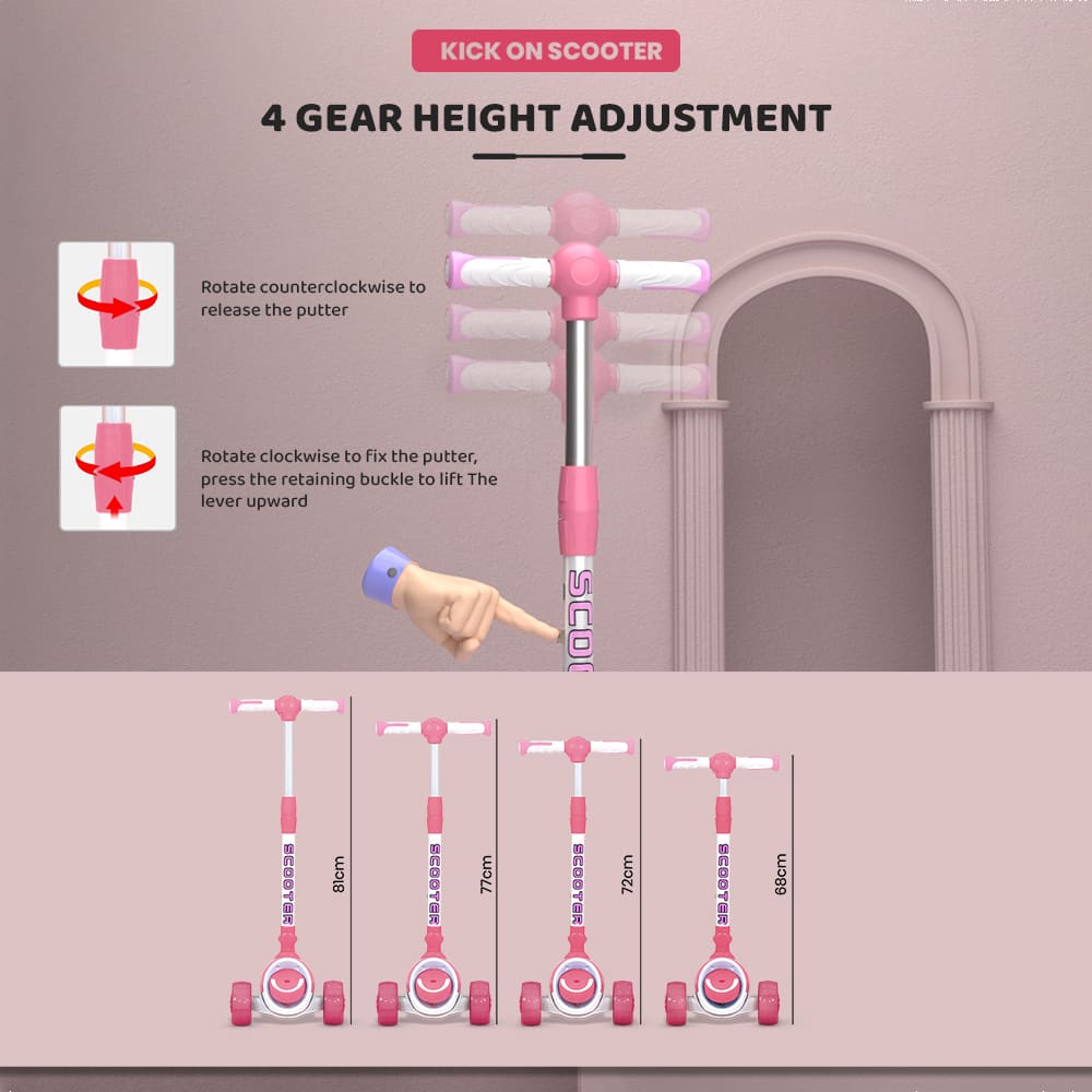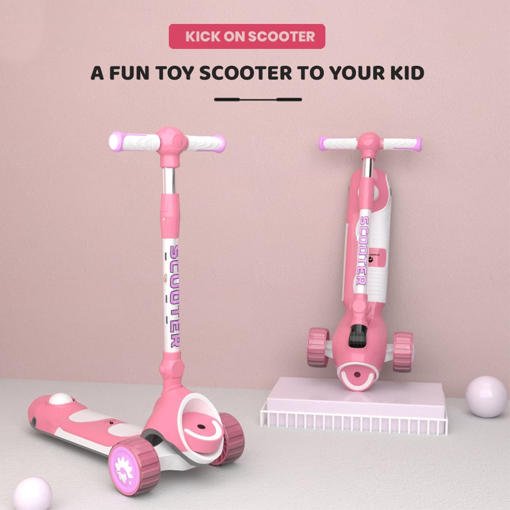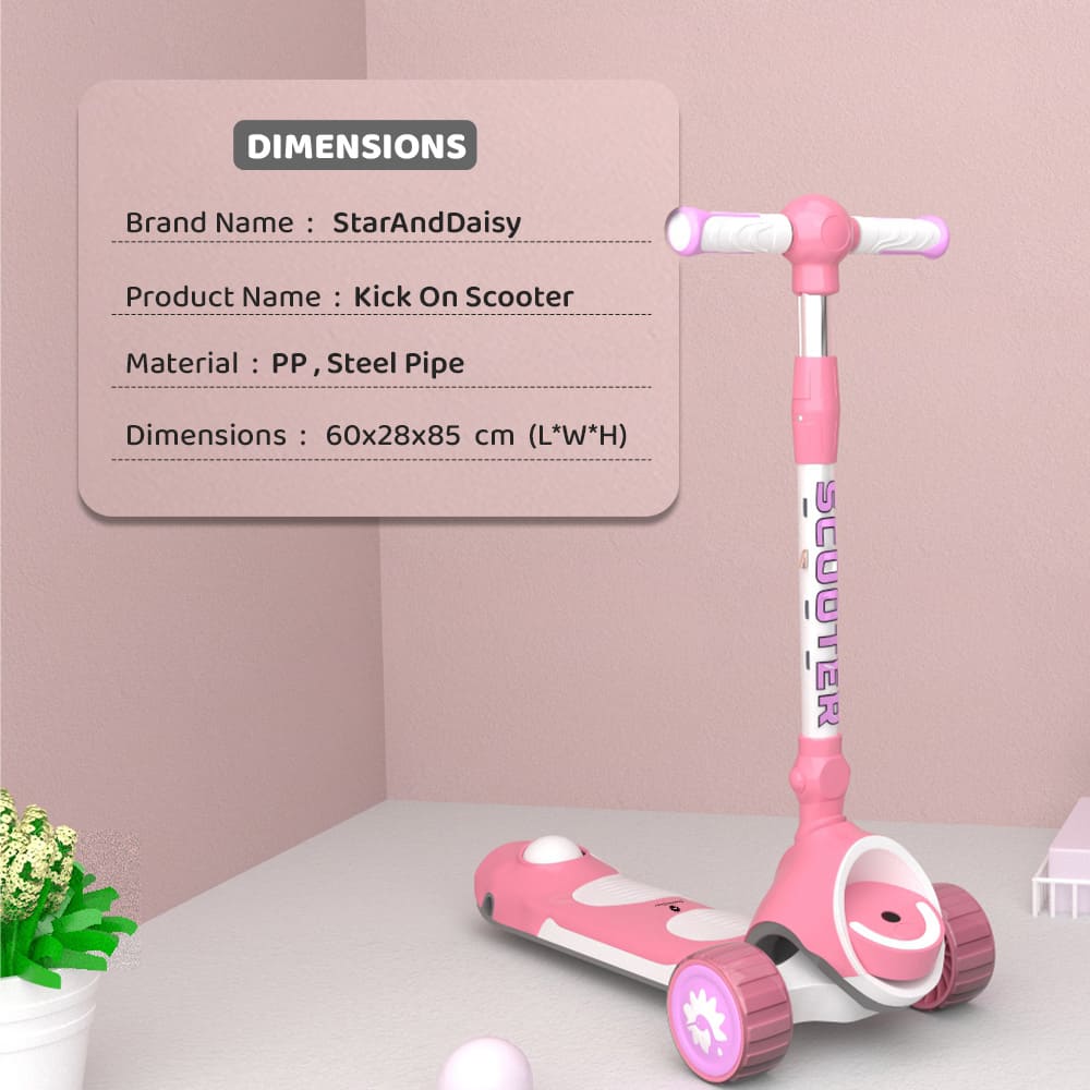 [Refurbished] StarAndDaisy Kick On Toddler Scooter for Kids Ages 3-10 Years Old Boy Girl with 3 Wheel LED Lights, Extra-Wide Childrens Foldable Kick Scooter Kids Ages 3-10 with 4 Adjustable Height and Lean-to-Steer (Pink)