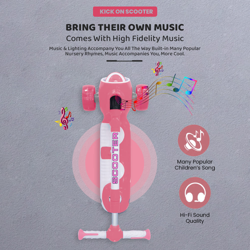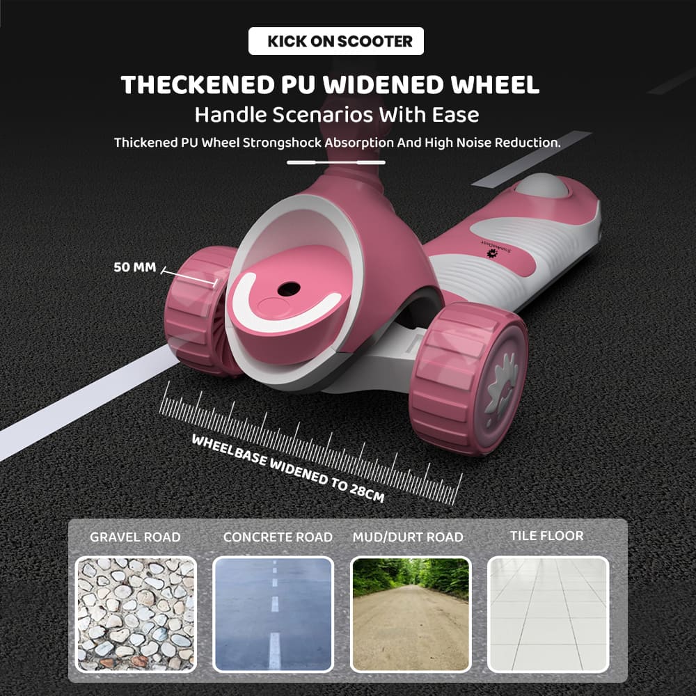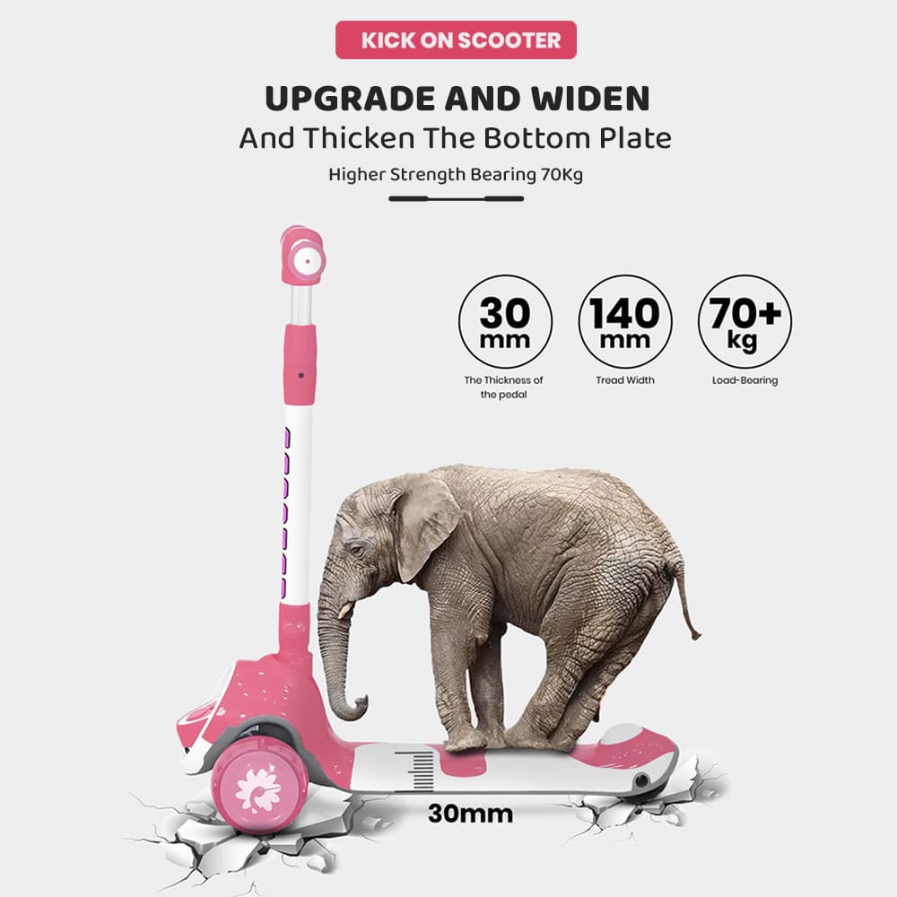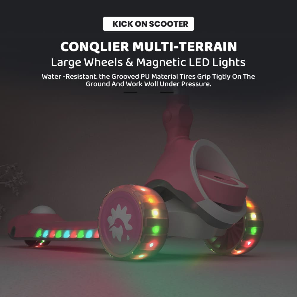 [Refurbished] StarAndDaisy Kick On Toddler Scooter for Kids Ages 3-10 Years Old Boy Girl with 3 Wheel LED Lights, Extra-Wide Childrens Foldable Kick Scooter Kids Ages 3-10 with 4 Adjustable Height and Lean-to-Steer (Pink)