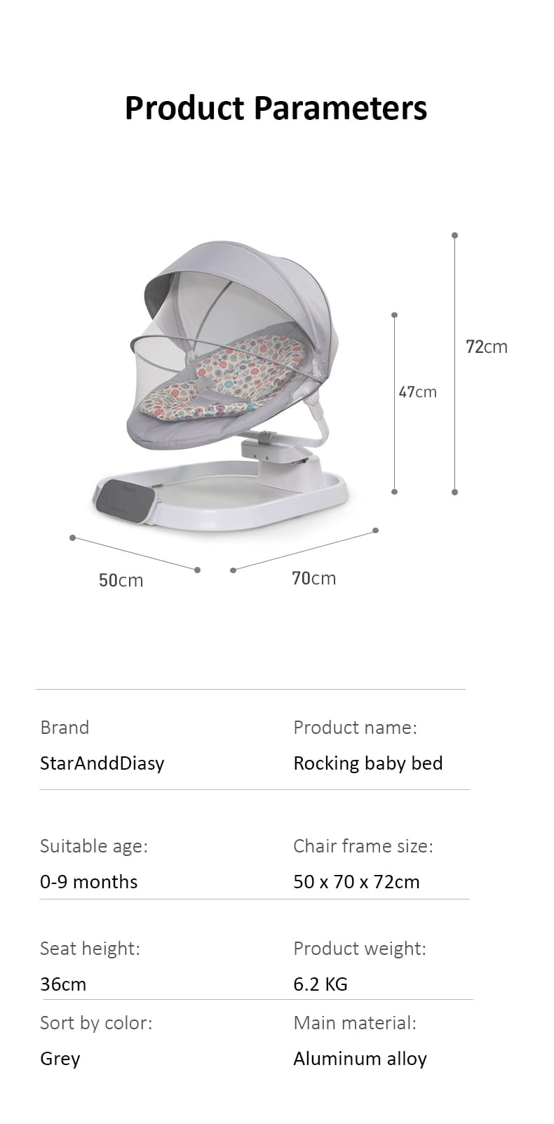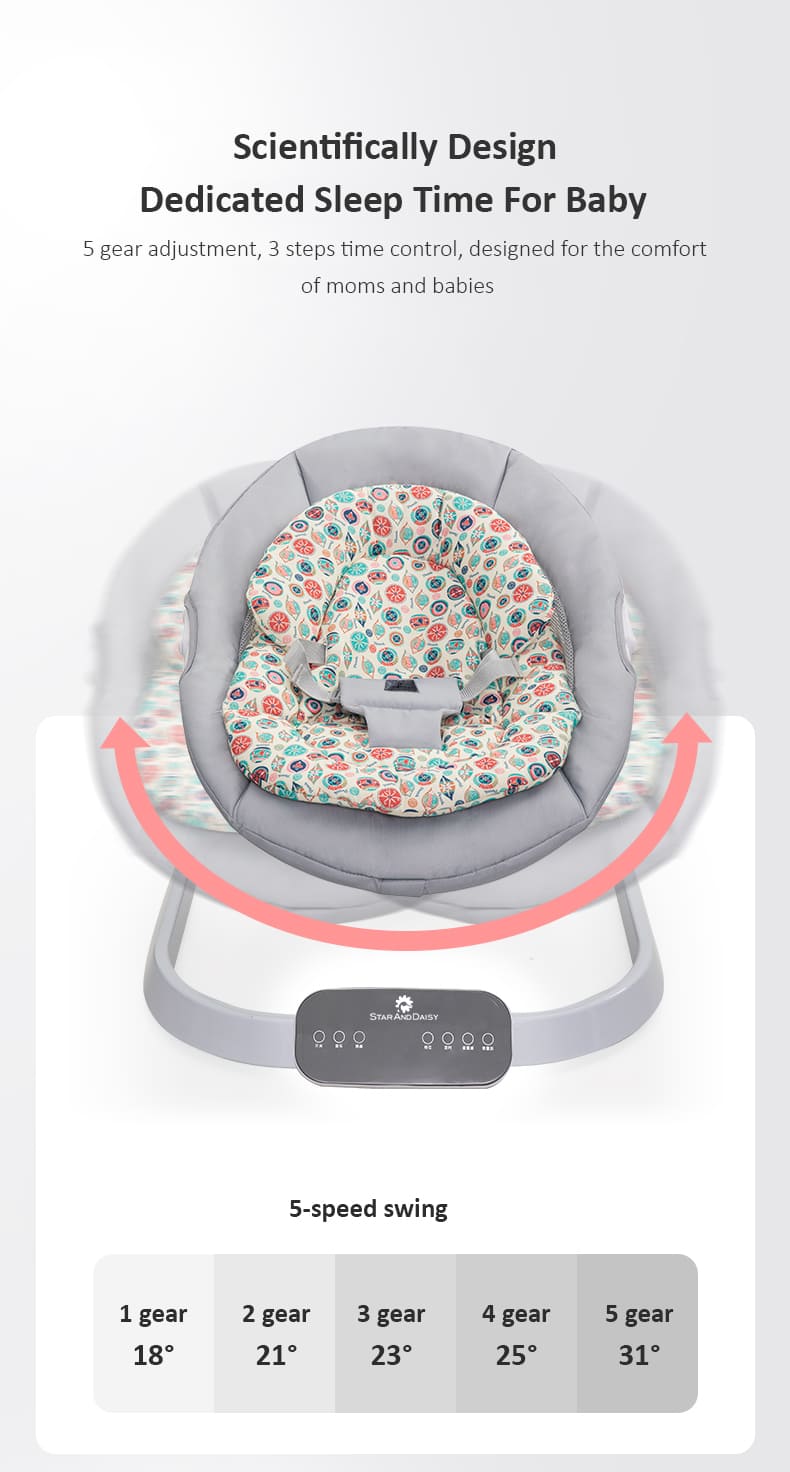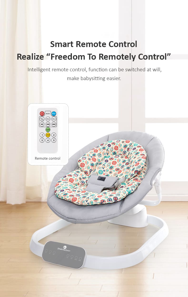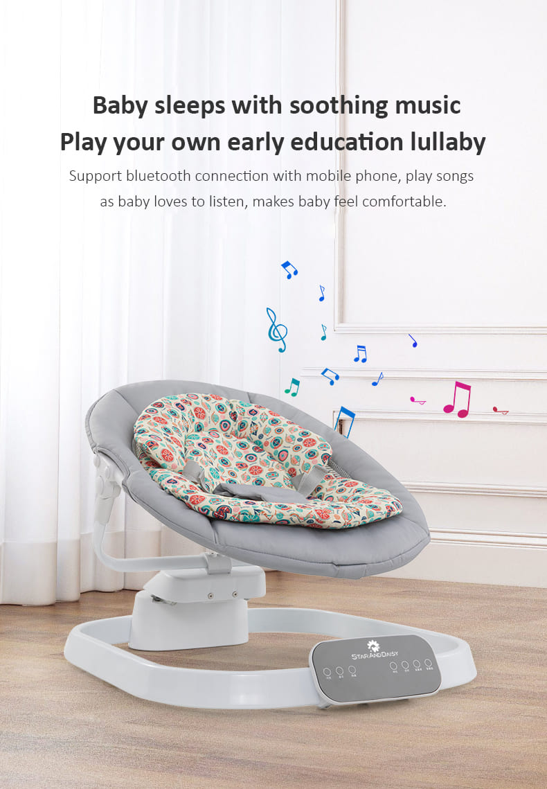 [Refurbished] StarAndDaisy Rocking Baby Bed Rocker / Swings for Infants with 5 Speeds Swings, Bluetooth Music Baby Bouncer with Remote Control for 2-10 kg, 0-18 Months, Dining Tray, Mosquito net and Urine mat (Grey)