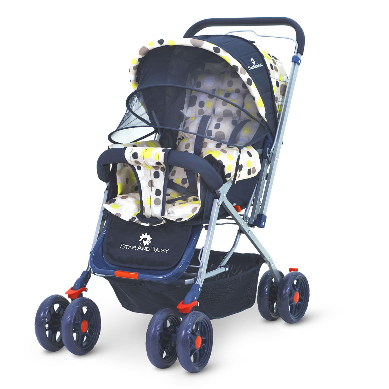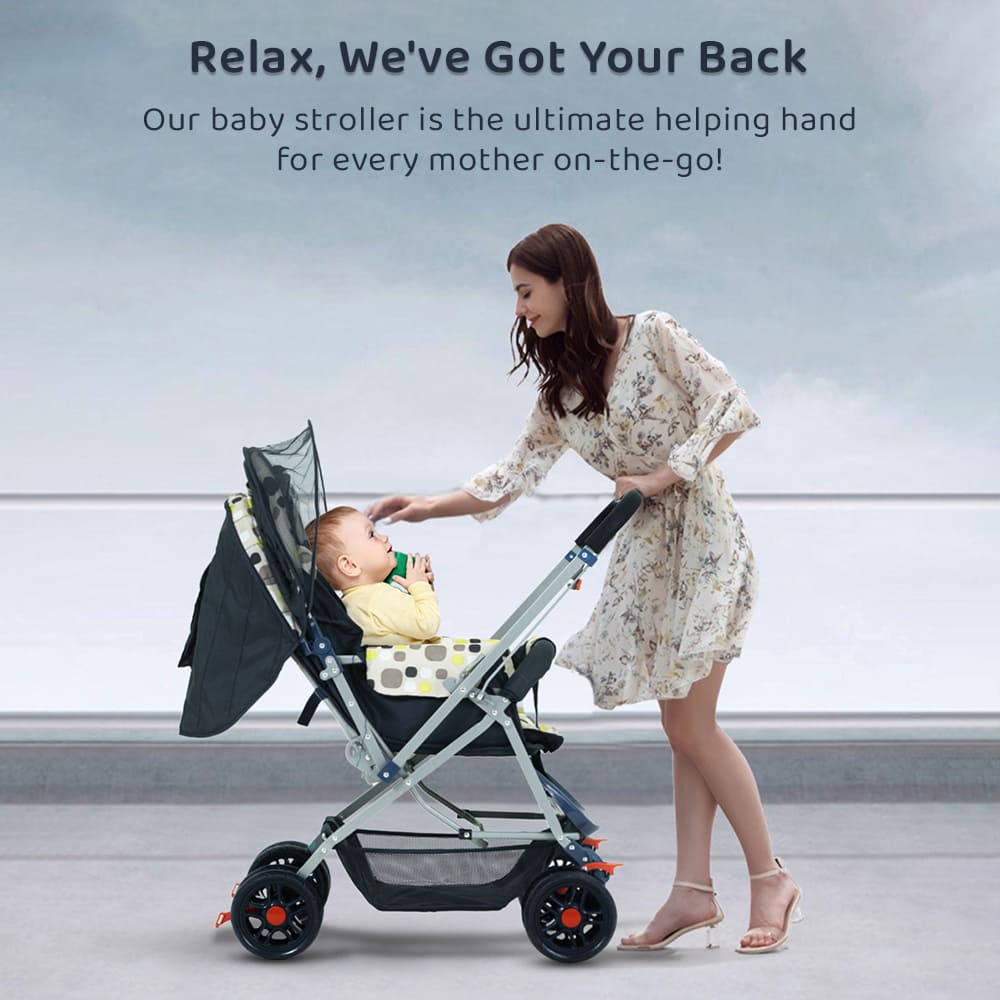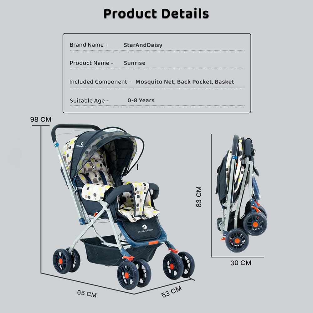 [Refurbished] StarAndDaisy Sunrise Baby Stroller and Pram with Extended Mosquito Net and Ultra Soft Cushions & Reversible Handlebar (Spectrum Multicolor)