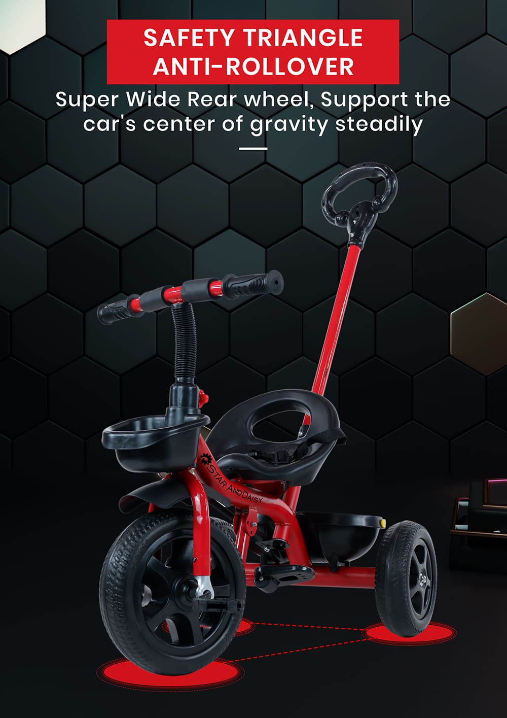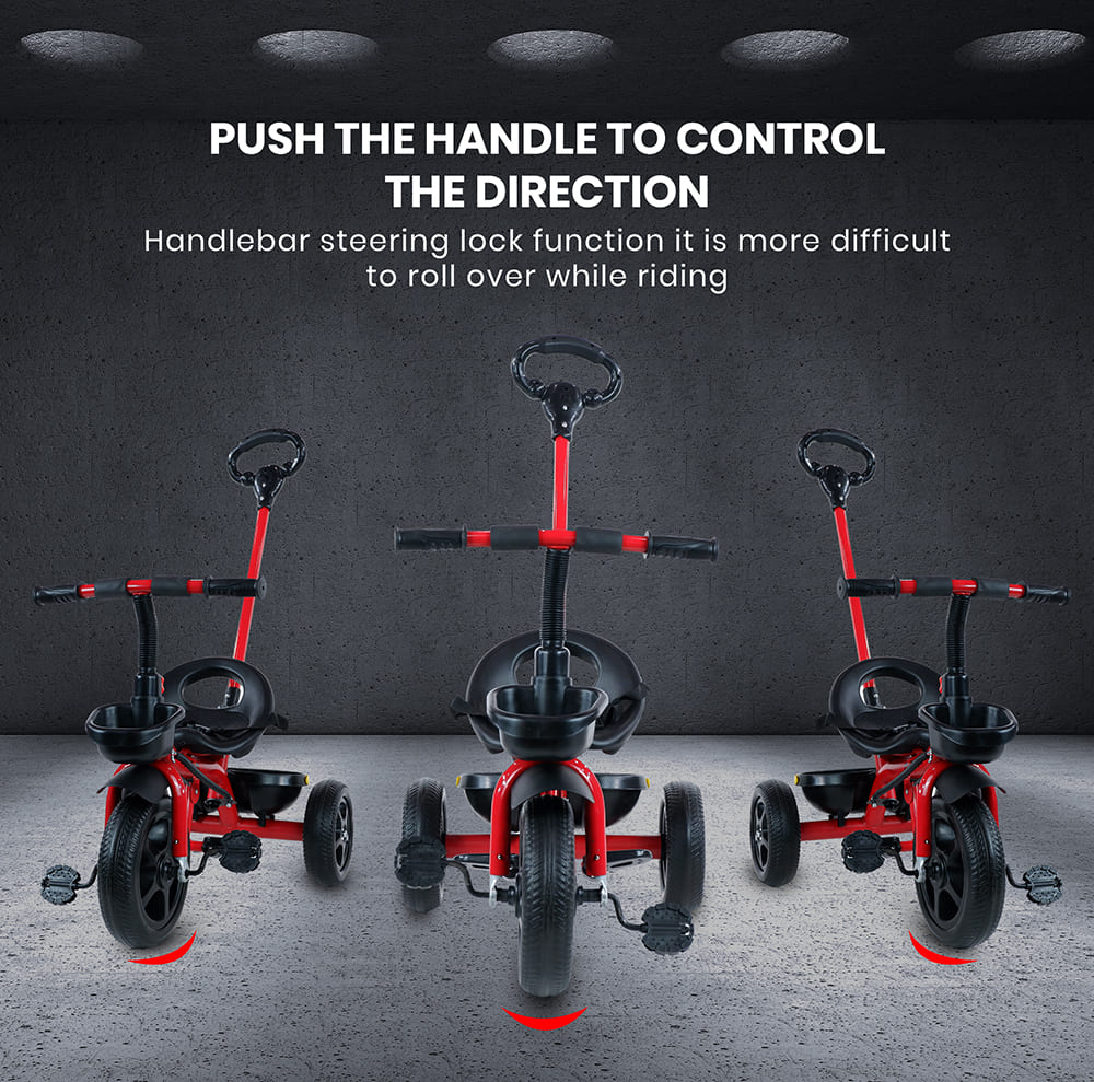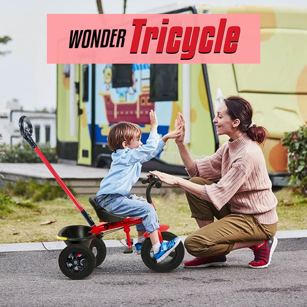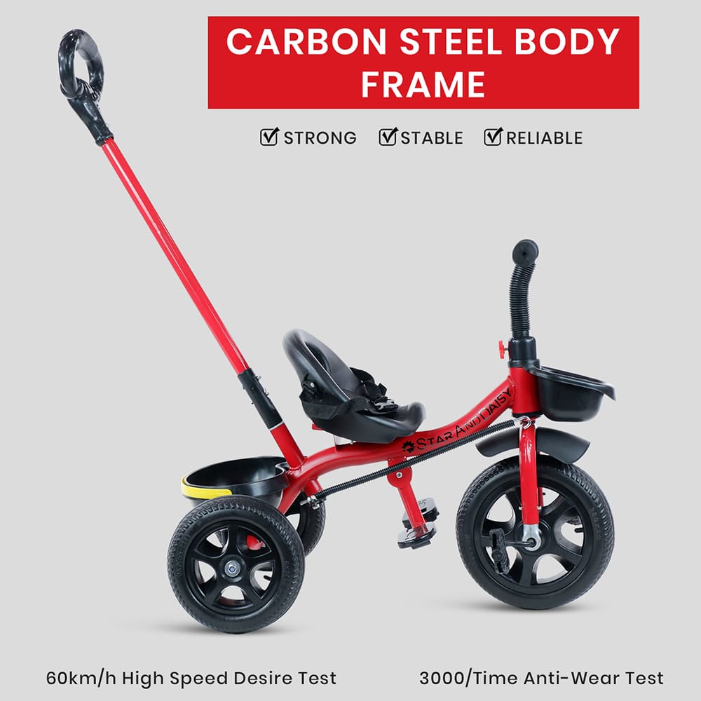 [Refurbished] StarAndDaisy Wonder Kids/Baby Tricycle Trike with Parental Control, with Dual Storage Basket, Cushion Seat, Seat Belt, Foldable Footrest, Boys Girls 1.5 to 5 Years (Red)