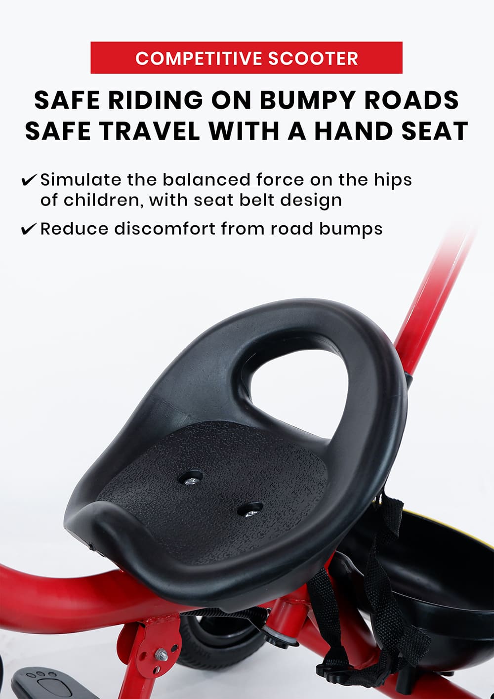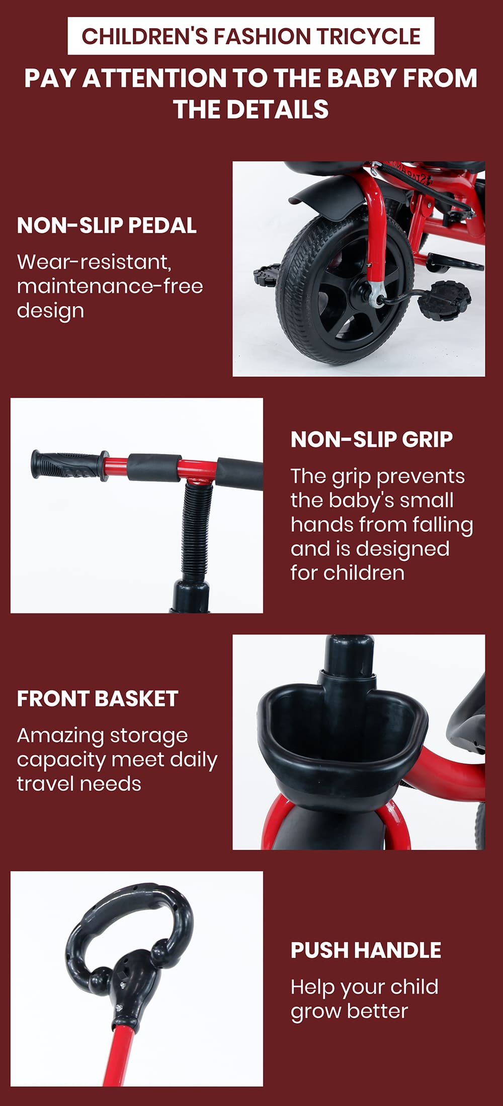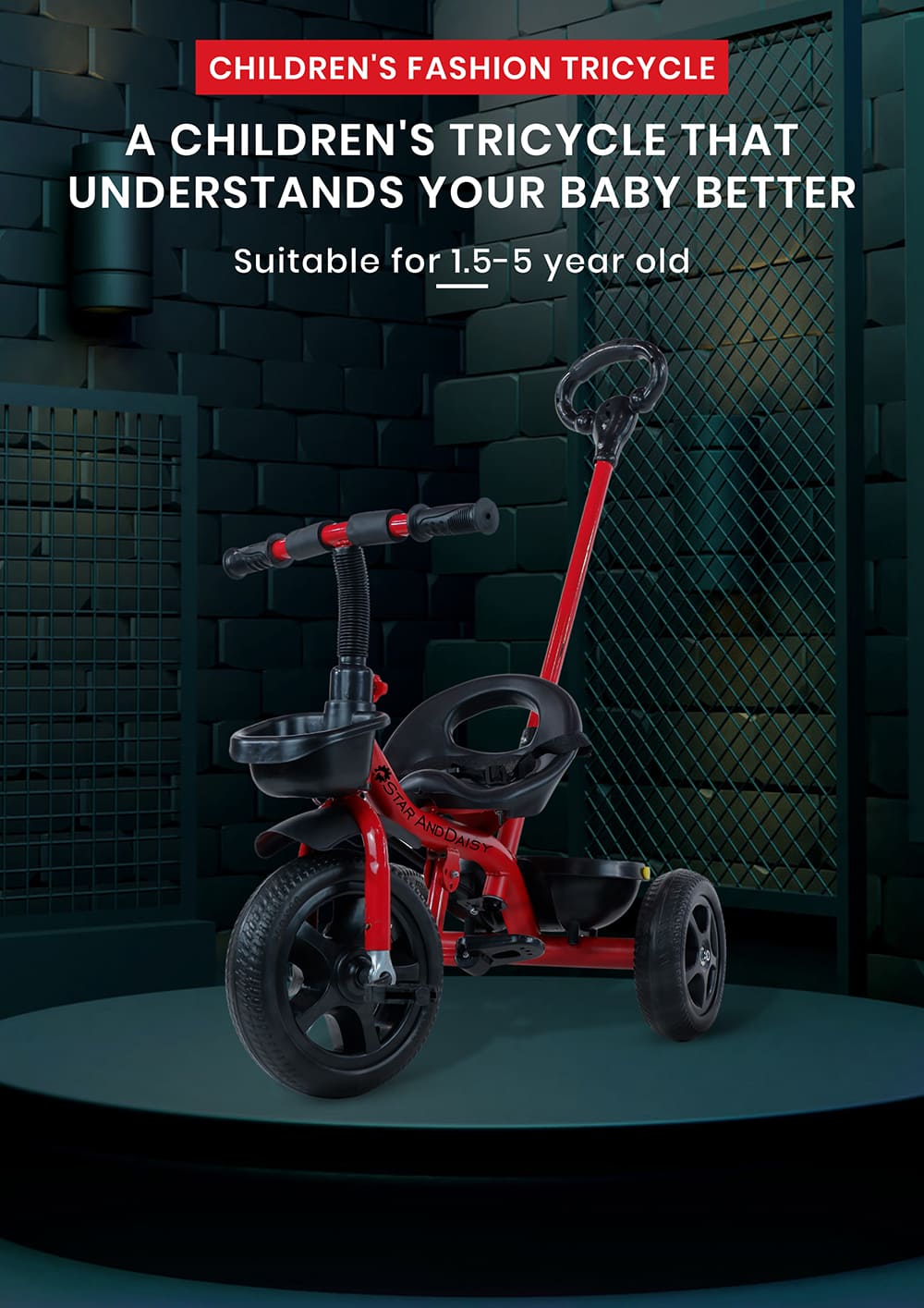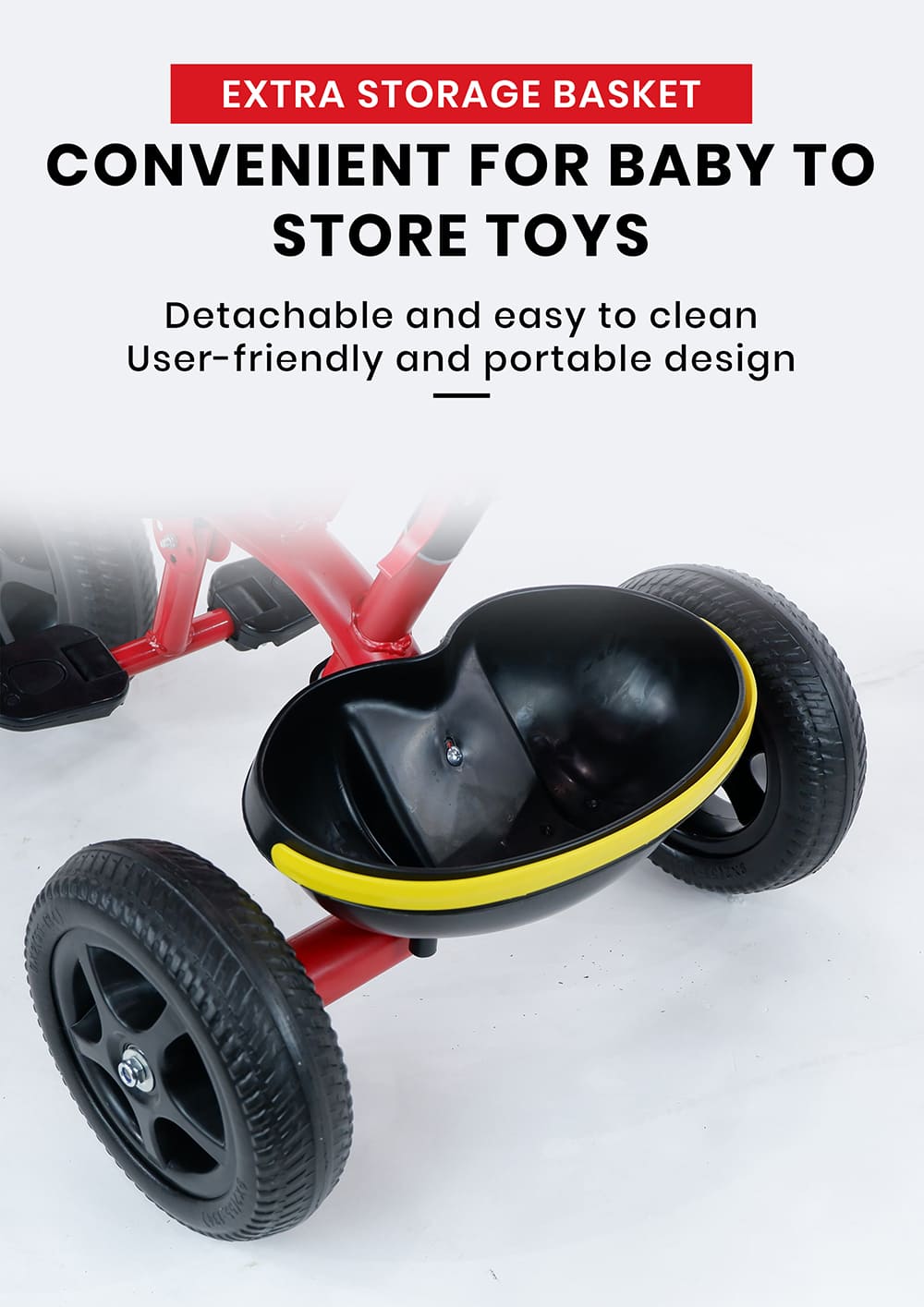 [Refurbished] StarAndDaisy Wonder Kids/Baby Tricycle Trike with Parental Control, with Dual Storage Basket, Cushion Seat, Seat Belt, Foldable Footrest, Boys Girls 1.5 to 5 Years (Red)