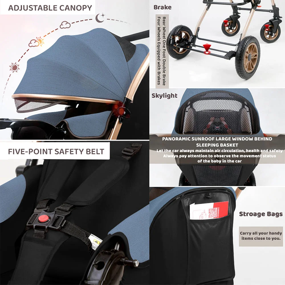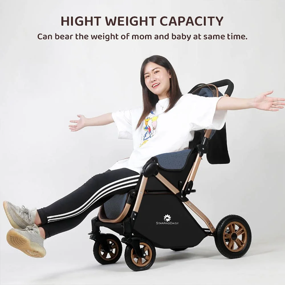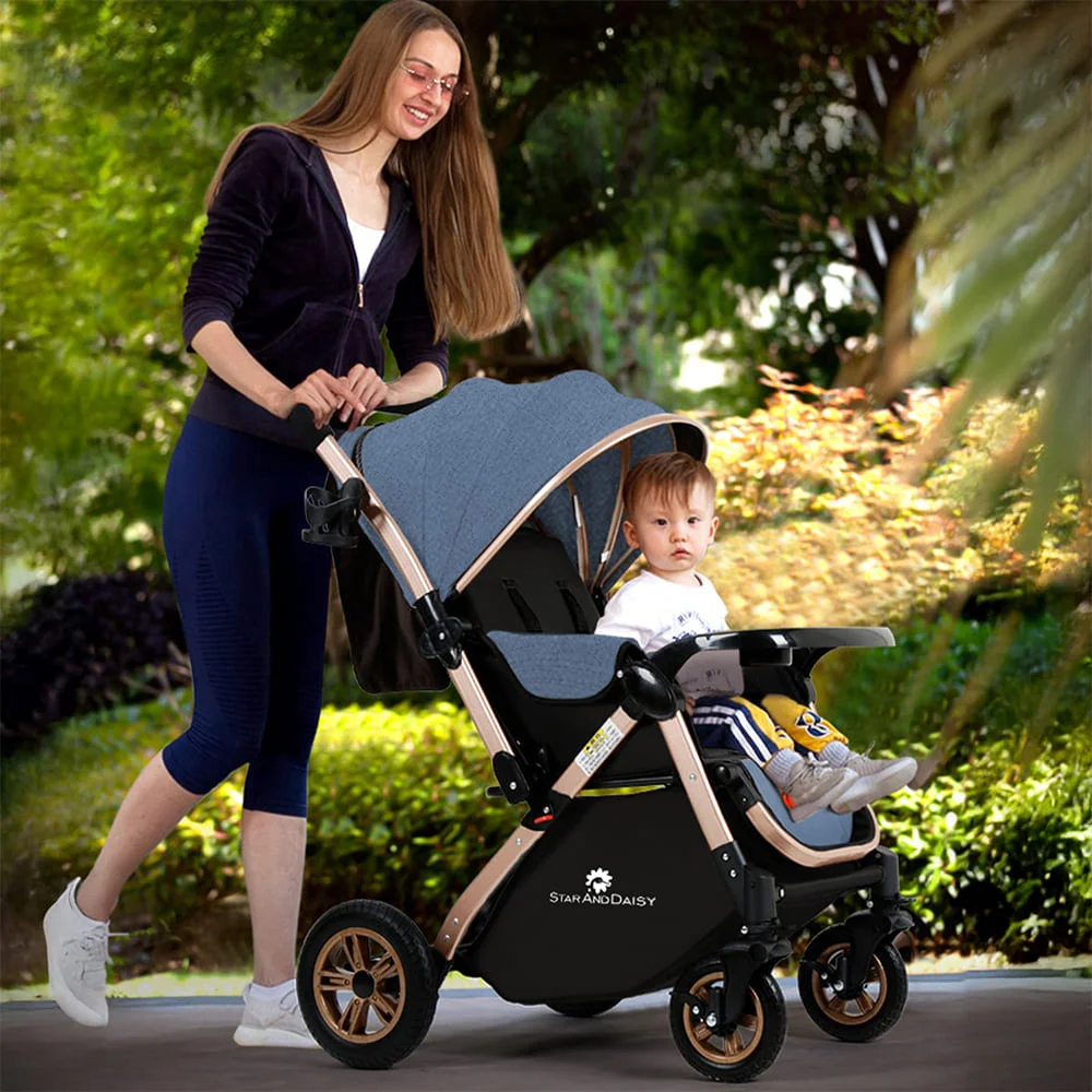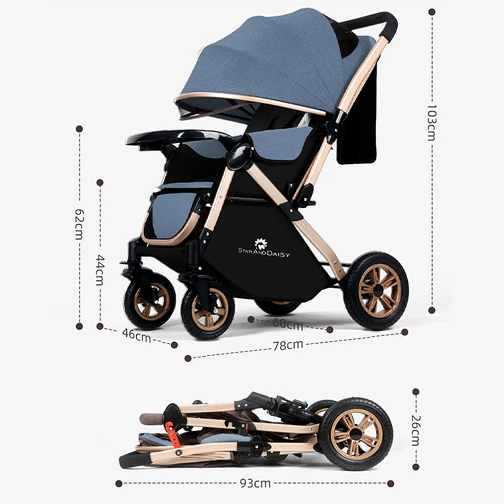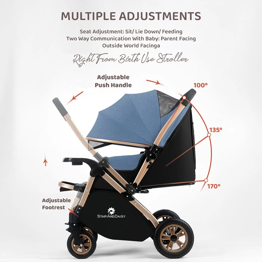[Refurbished] StarAndDaisy Ultra Baby Stroller Pram & Buggy, Pushchair Reversible Handle with Anti-Shock Rubber Wheels (Blue)