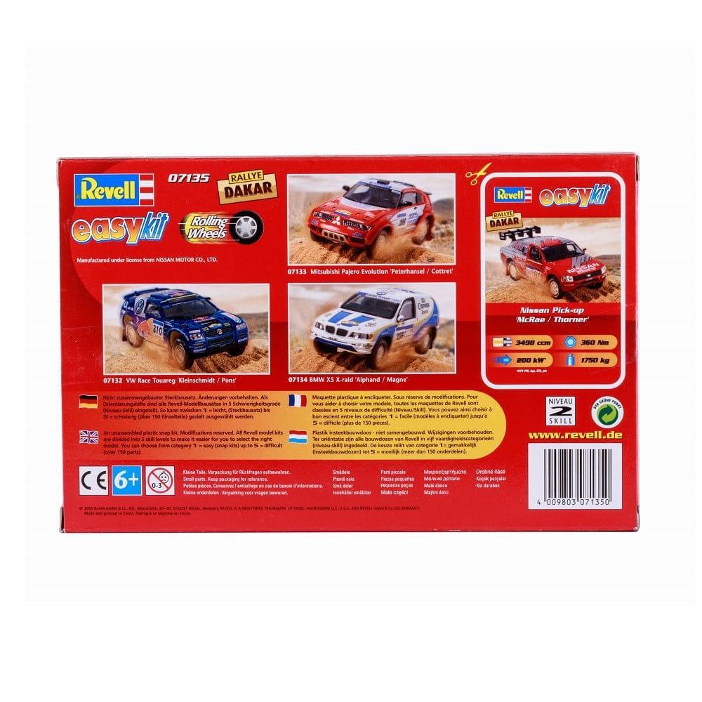 The Revell Easy Kit Nissan Pick-Up is a redesigned Snap Kit for easy assembly without the need for glue. The kit comes with illustrated instructions that make assembly a breeze. The kit is designed at a scale of 1:32, with a size of 140mm, and includes rolling wheels and robust metal axes.