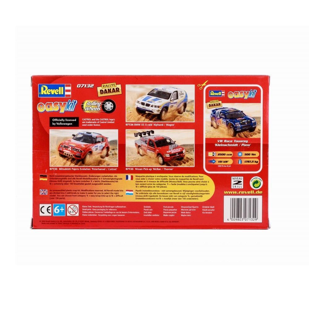 The Revell Easy Kit VW Race Touareg is a redesigned Snap Kit for easy assembly without the need for glue. The kit comes with illustrated instructions that make assembly a breeze. The kit is designed at a scale of 1:32, with a size of 140mm, and includes rolling wheels and robust metal axes.