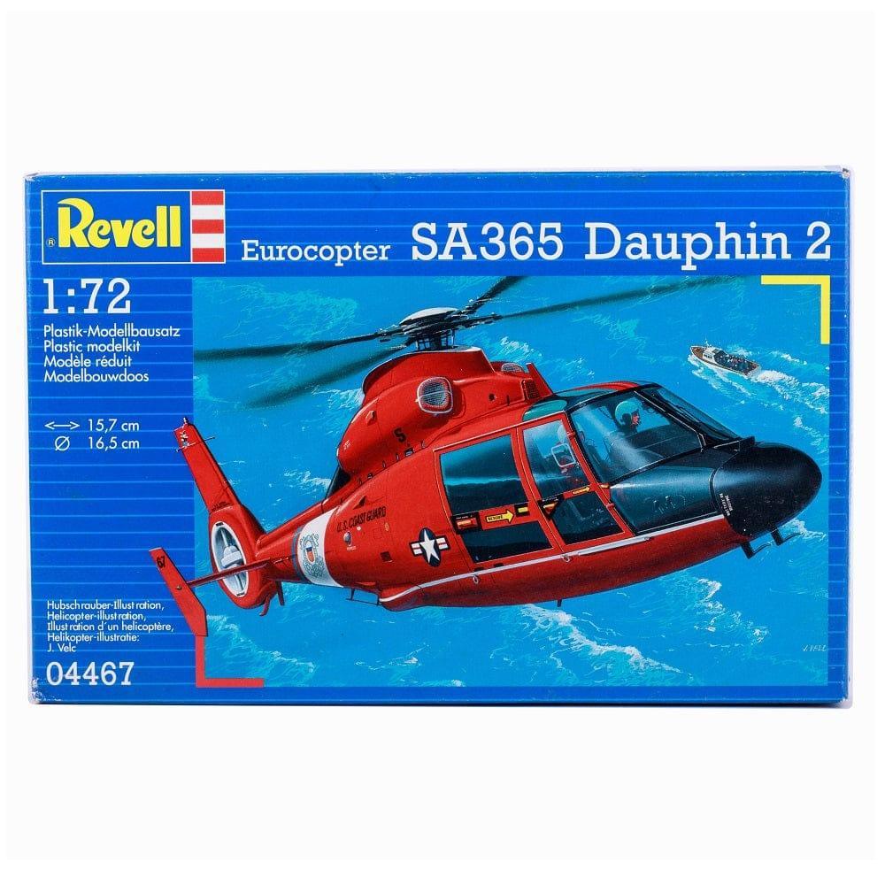 The Revell Eurocopter SA365 Dauphin2 is an unassembled plastic model kit of the Eurocopter SA 365 Dauphin 2 Helicopter. It offers an official true-to-scale 1:72 replica with a length of 15.7 cms.
