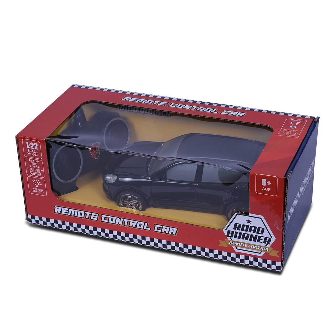 The Road Burner Avalanche is a remote control high speed racing super car series, recommended for ages 3 years and above. The remote provides four direction support for forward, backward, left turn and right turn. It has a good speed and a look of modern car with durable quality. The remote has a good range with antenna for kids to play.