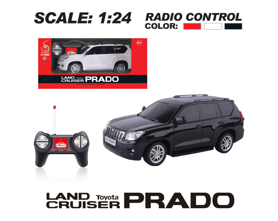 Radio controlled car in Toyota Landcruiser Prado version, scale 1:24. The headlights of the car give real light. The remote control operates at MHz. There are different colors, these are randomly supplied interchangeably. The price is per piece. The car runs on batteries (3 x 1.5 V AA), these are not included.