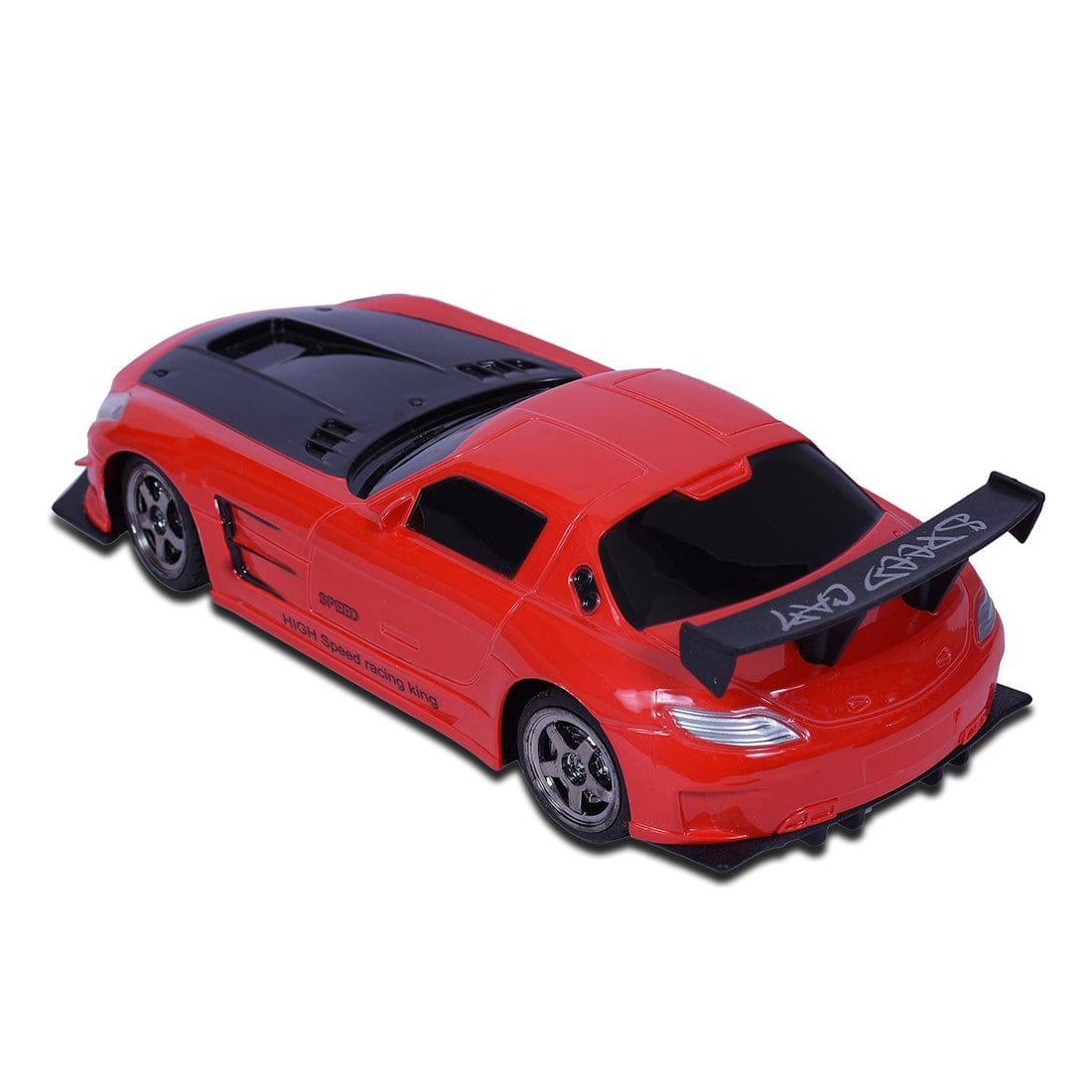 Road Burner Red car is the perfect remote control car for kids aged 3 and above. It has a sleek, modern design and is built to last. The remote control provides four directions of support – forward, backward, left turn, and right turn – and has a good range with an antenna. It runs fast on flat surfaces, making it a great choice for kids who love to race.