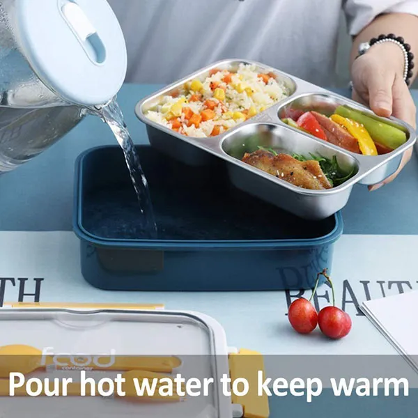 The packing part is very tight, so even when your lunch is lying down, it will not leak or leak, so your backpack or lunch bag will not get dirty. Practical lunch box is easy to carry. Can be used indoors or outdoors.
