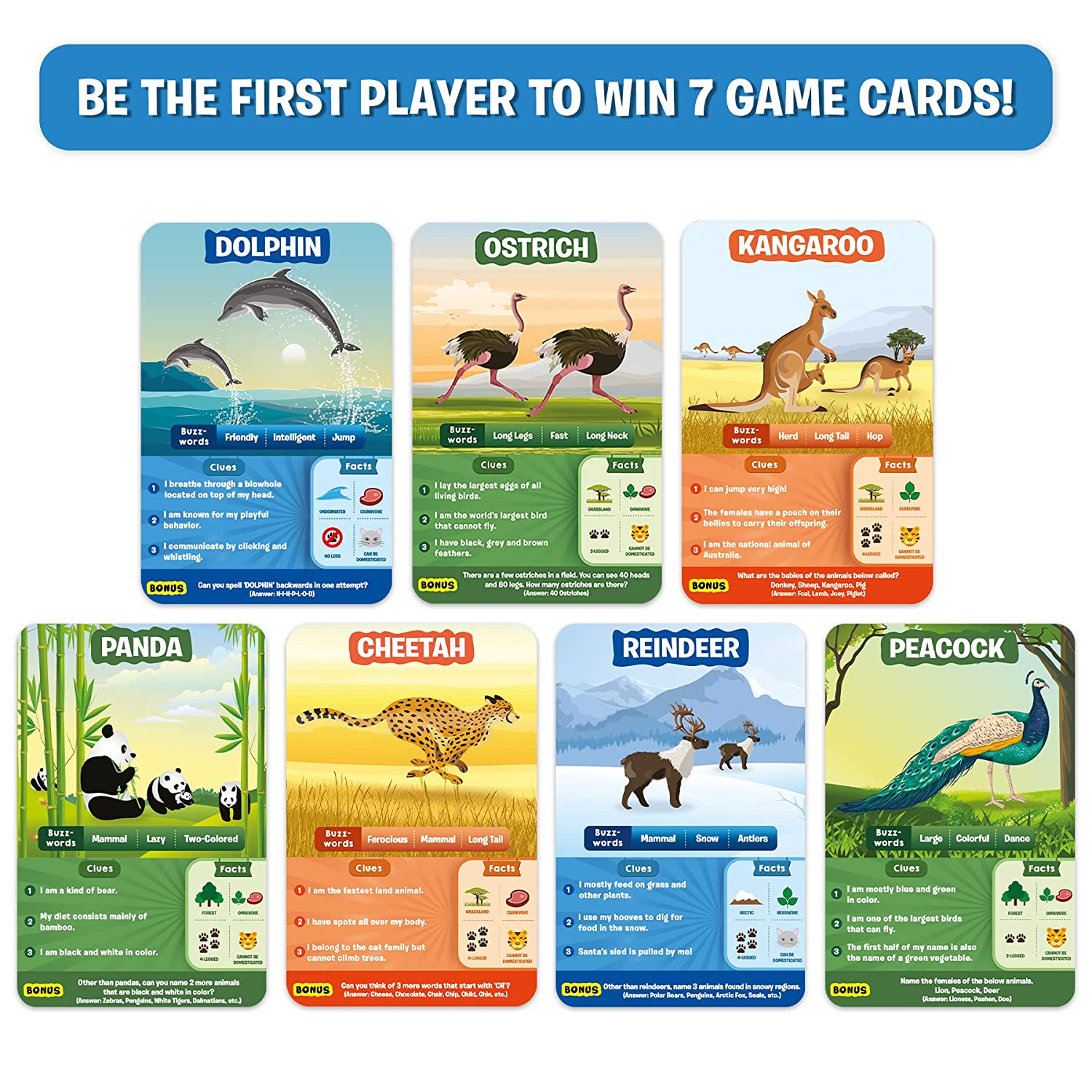 Is it a carnivore? Is it a domestic animal? Does it live in groups? Think hard, ask intelligent questions, and be the first player to win 7 Game Cards!