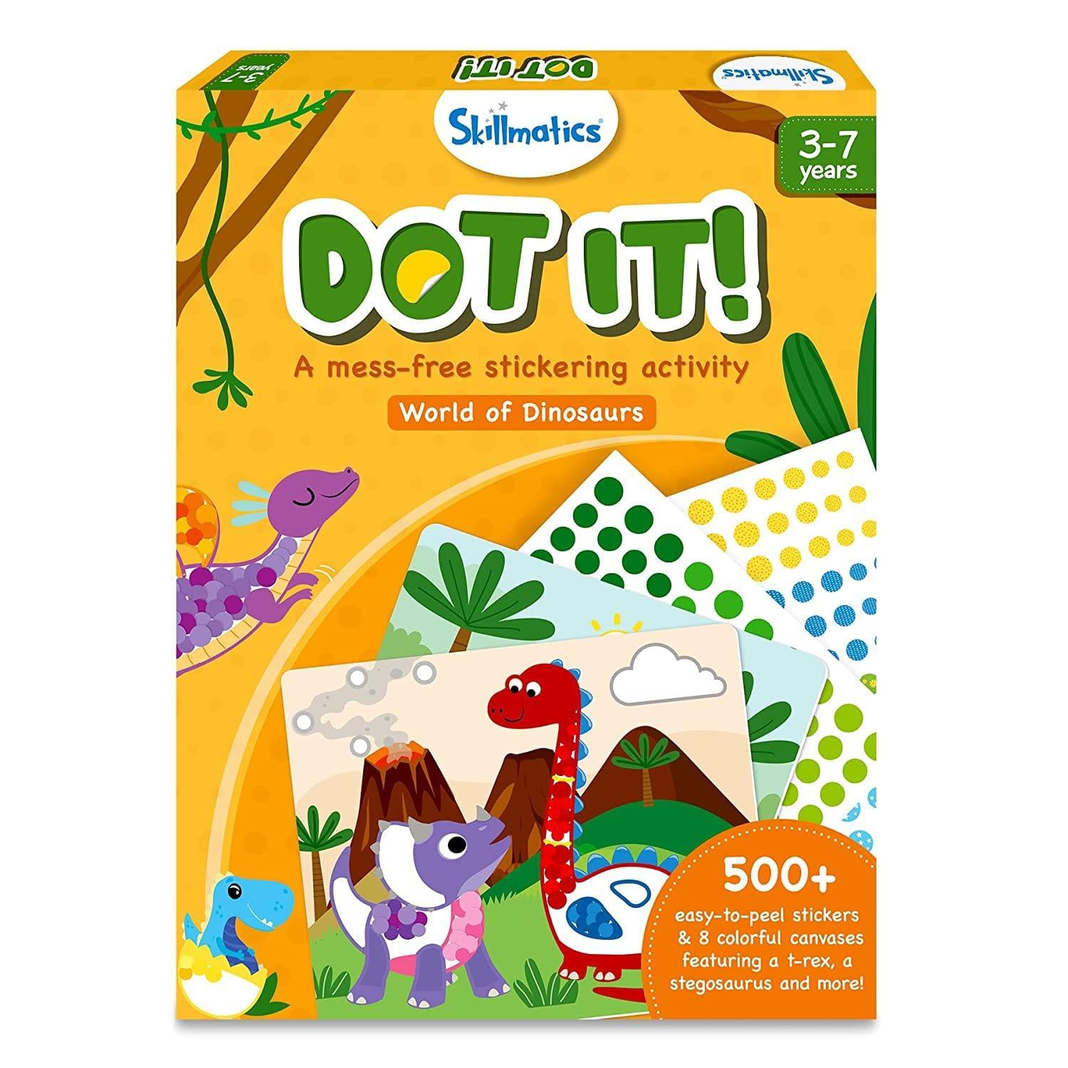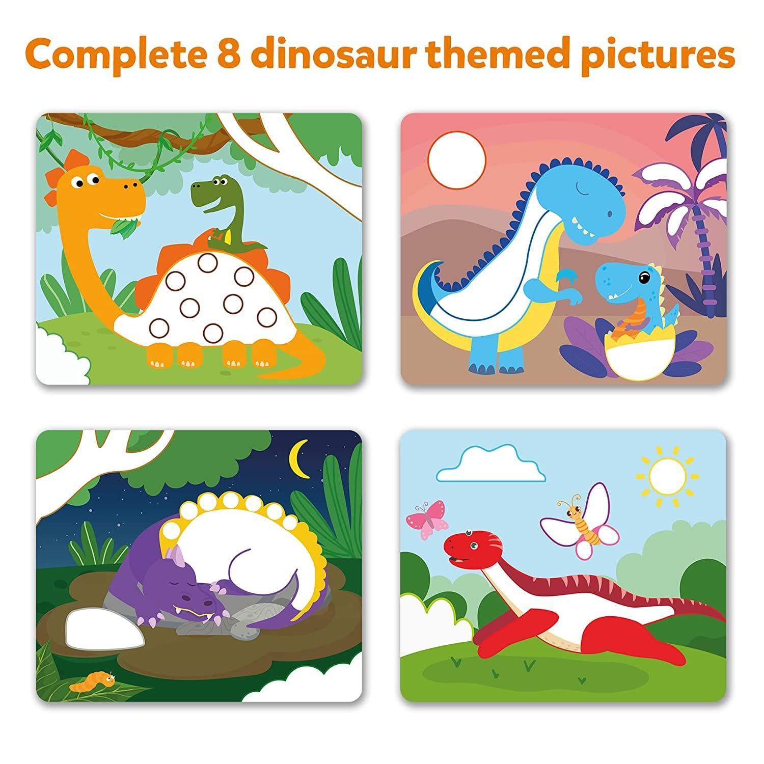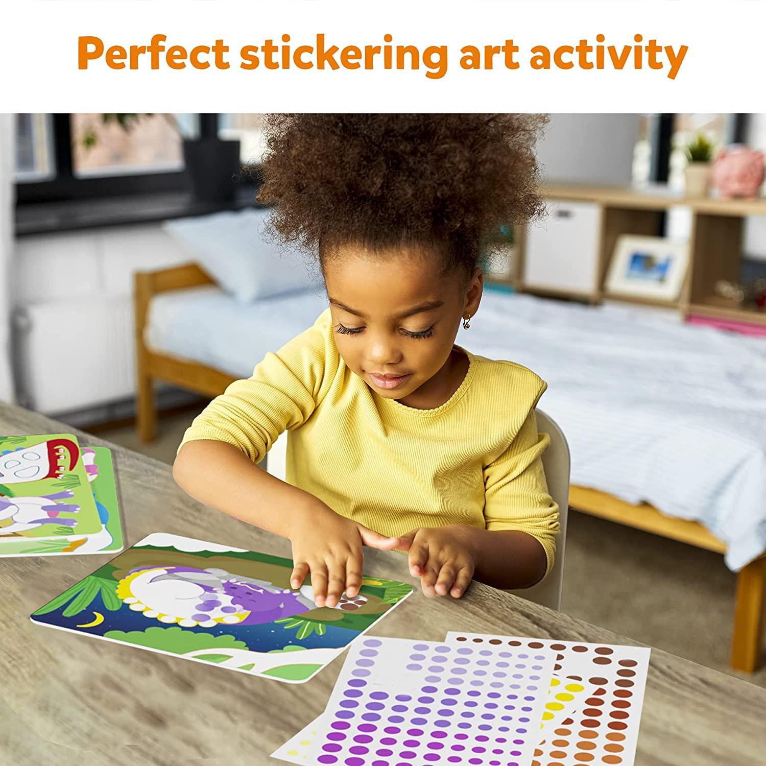Dot It! World of Dinosaurs is the perfect no-mess art activity for kids aged 3 to 7. With 500+ easy-to-peel stickers, your child can use their fine motor skills and imagination to complete 8 colorful pictures!