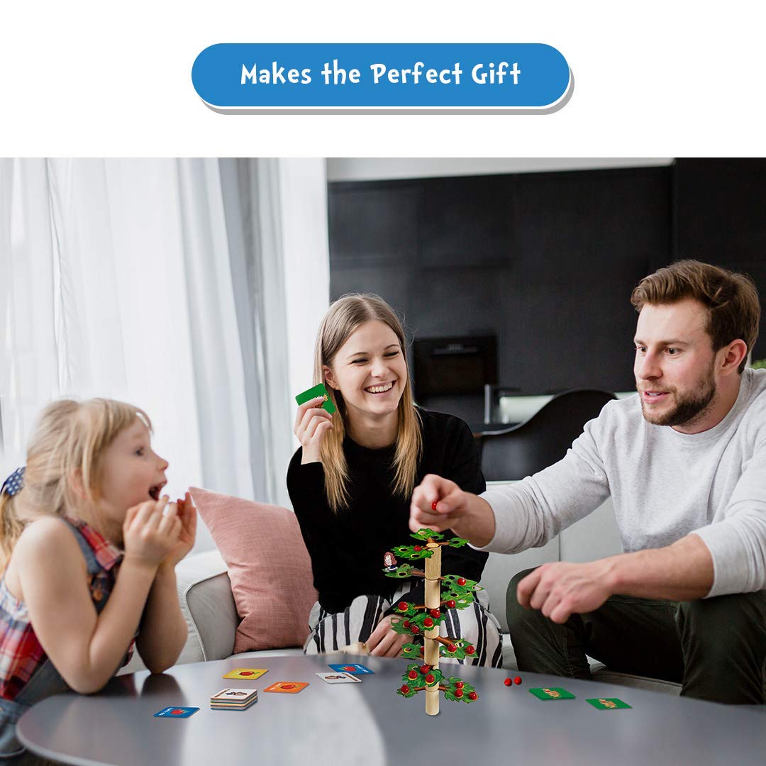 FUN FAMILY GAME & INTERACTIVE LEARNING: Newtons Tree is a super fun game of balance, skill, and strategy. Build the tallest tree without causing it to tumble down to win! EXCITING BALANCING GAME: The objective of the game is to build the tallest tree by stacking trunks, adding branches, and keeping it balanced as you add and pluck apples and move Newton around ENGAGING & EDUCATIONAL: This game encourages interactive play and helps develop fine motor skills. It is perfect for children ages 6 and up and a great game to play with friends and family EASY TO SET-UP & PLAY: This 131-piece family game includes: 60 Apples, 8 Trunks, 54 Game Cards, 1 Newton Piece, and 8 Branches, and an easy-to-read instruction leaflet MULTIPLE DEVELOPMENT BENEFITS: Newtons Tree helps children develop hand-eye coordination and cognitive and interpersonal skills. It is also an exceptional screen-free play option.