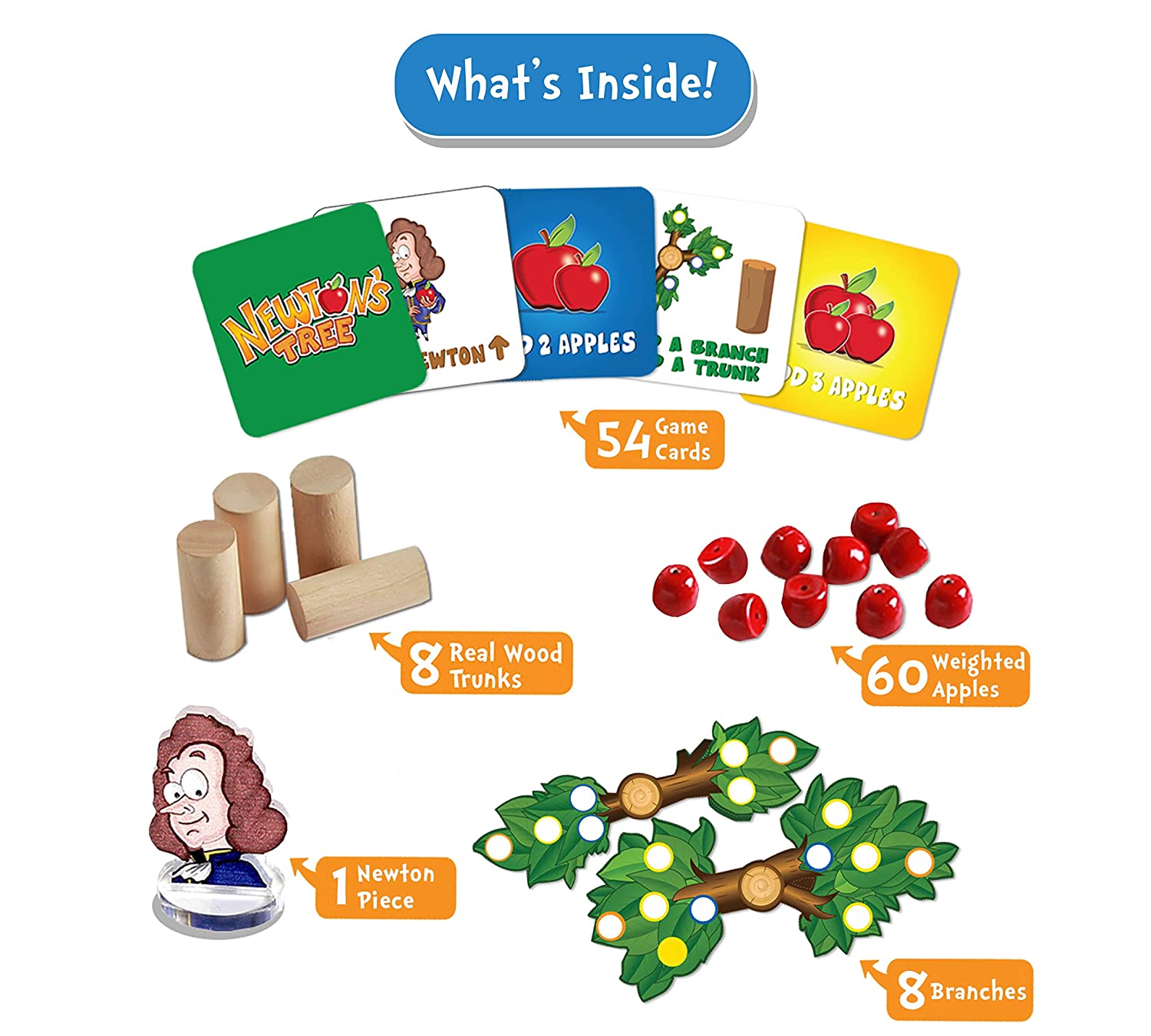 Get smart with Newton in this super fun game of balance and skill! Build Newton’s tree by adding branches and plucking apples to move Newton around. Strategize and play game cards wisely to grow Newton’s Tree without a fumble. Get Smart With Newton In This Super Fun Game Of Balance And Skill! Build Newton’S Tree By Adding Branches And Keep It Balanced As You Add And Pluck Apples And Move Newton Around. Strategize And Play Your Game Cards Wisely! Are You Going To Be The One To Fumble? Remember…Taller The Tree, Quicker The Tumble!