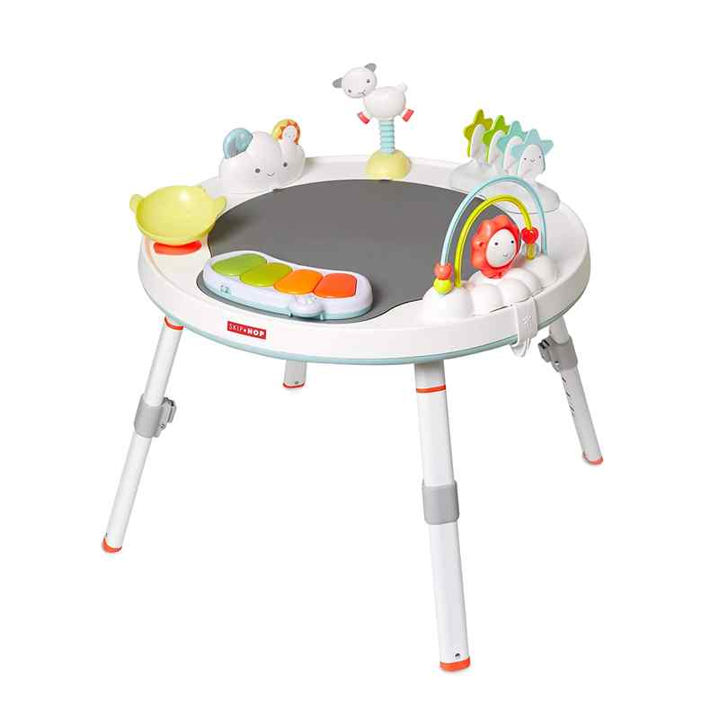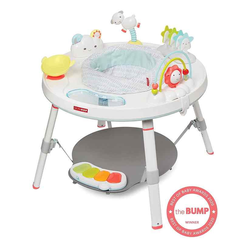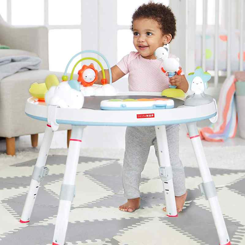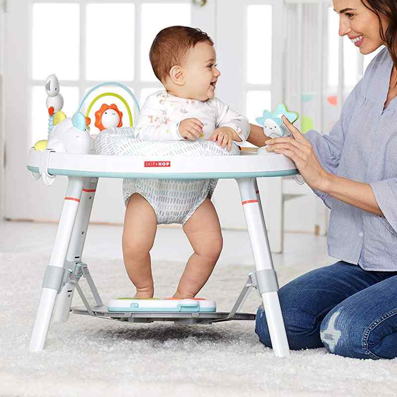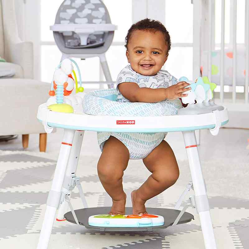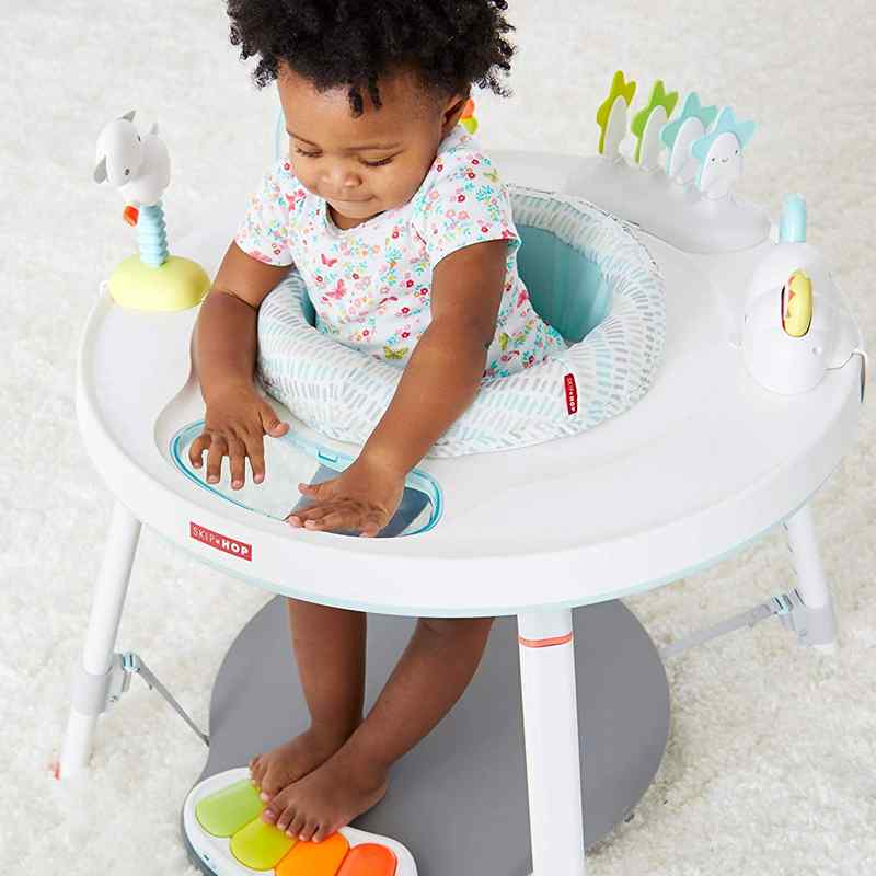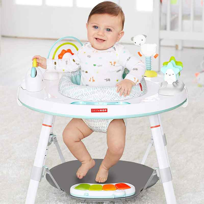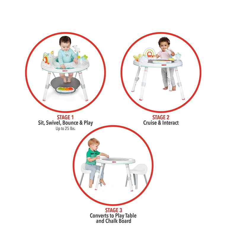 Ages 4m+ Three stages of use: Sit, swivel, bounce & play; Cruise & interact; Play table. 25+ developmental activities.