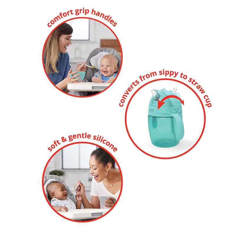 Packed with five smart solutions for easier meals with baby, our convenient set includes two serve & store bowls, two soft and gentle silicone spoons and a 2-in-1 cup that converts from Sippy to straw to suit your needs. Great for home or on-the-go!