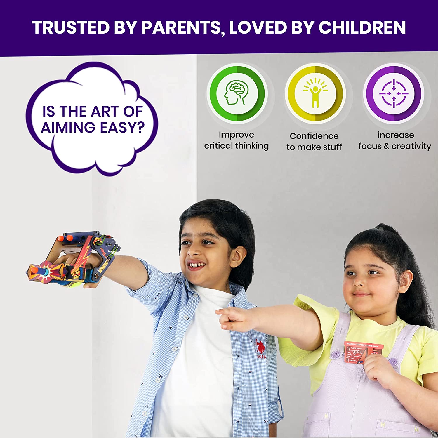 Once assembled, the Air Blaster comes to life as a fun and interactive toy. Kids can experiment with air pressure and learn about the science behind propulsion as they launch soft projectiles. It’s a fantastic way to apply the Smartivity Air Blaster Toy Gun concepts they’ve learned while having a blast.