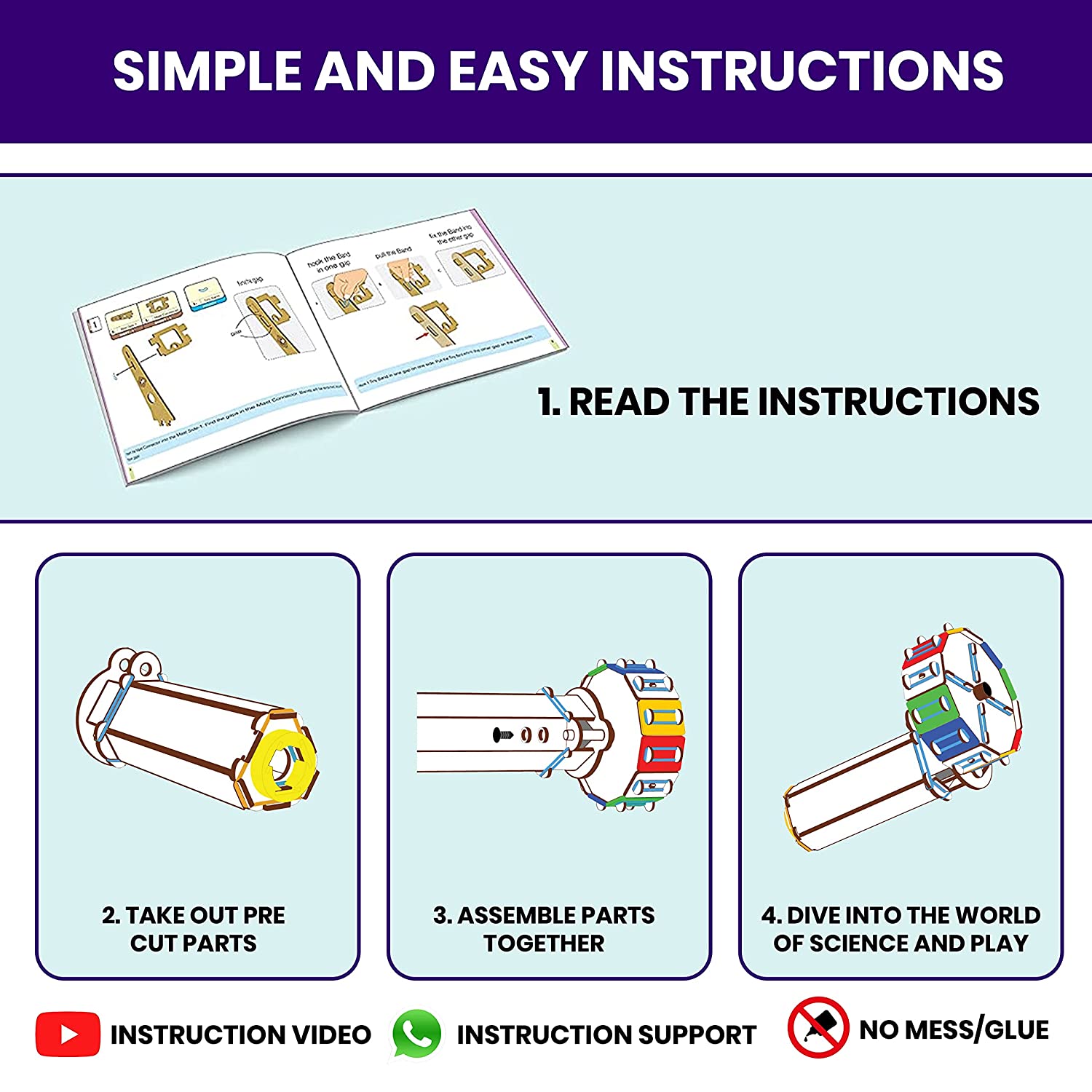 No Mess, No Tools Needed for assembly for a clean, MESS-FREE HOME, Elastic Bands joinery, Easy to Disassemble and Reassemble.