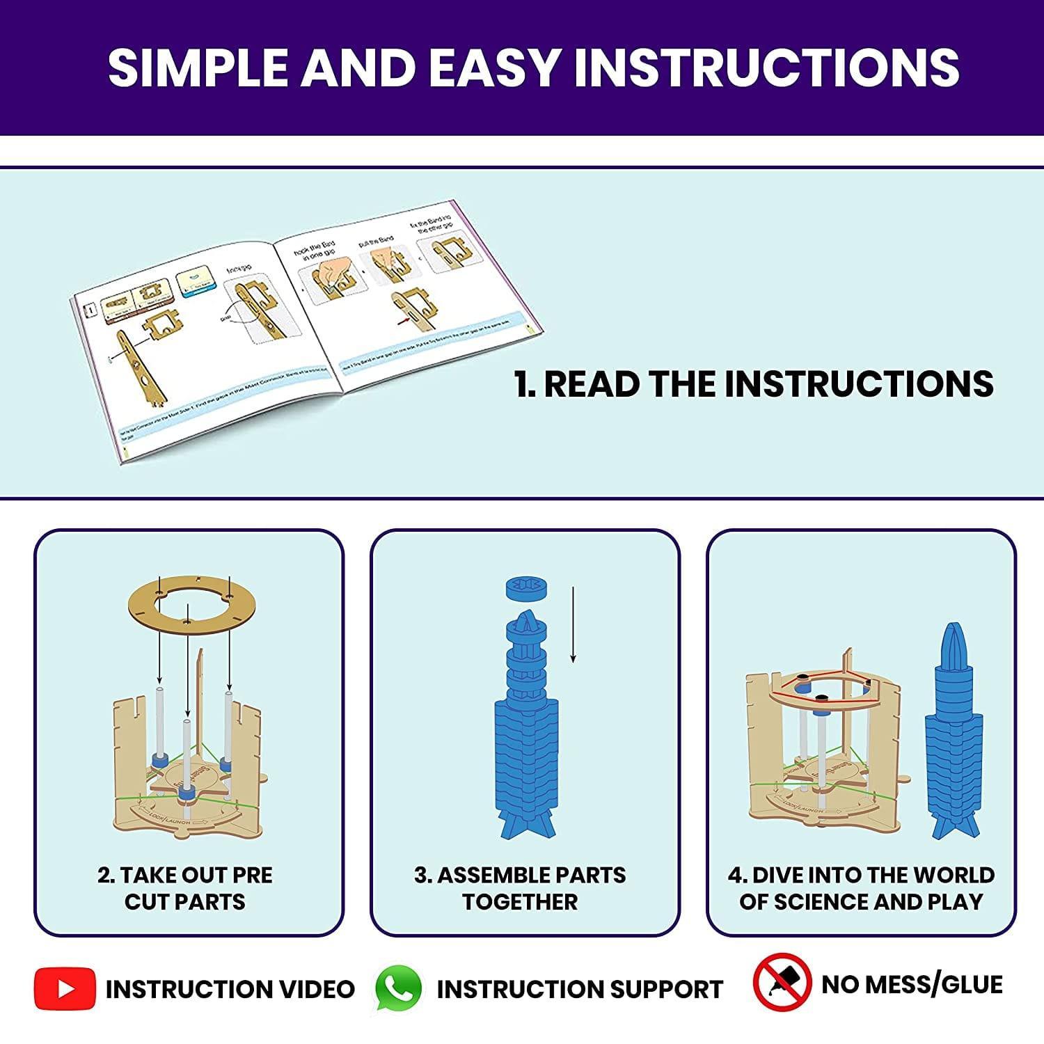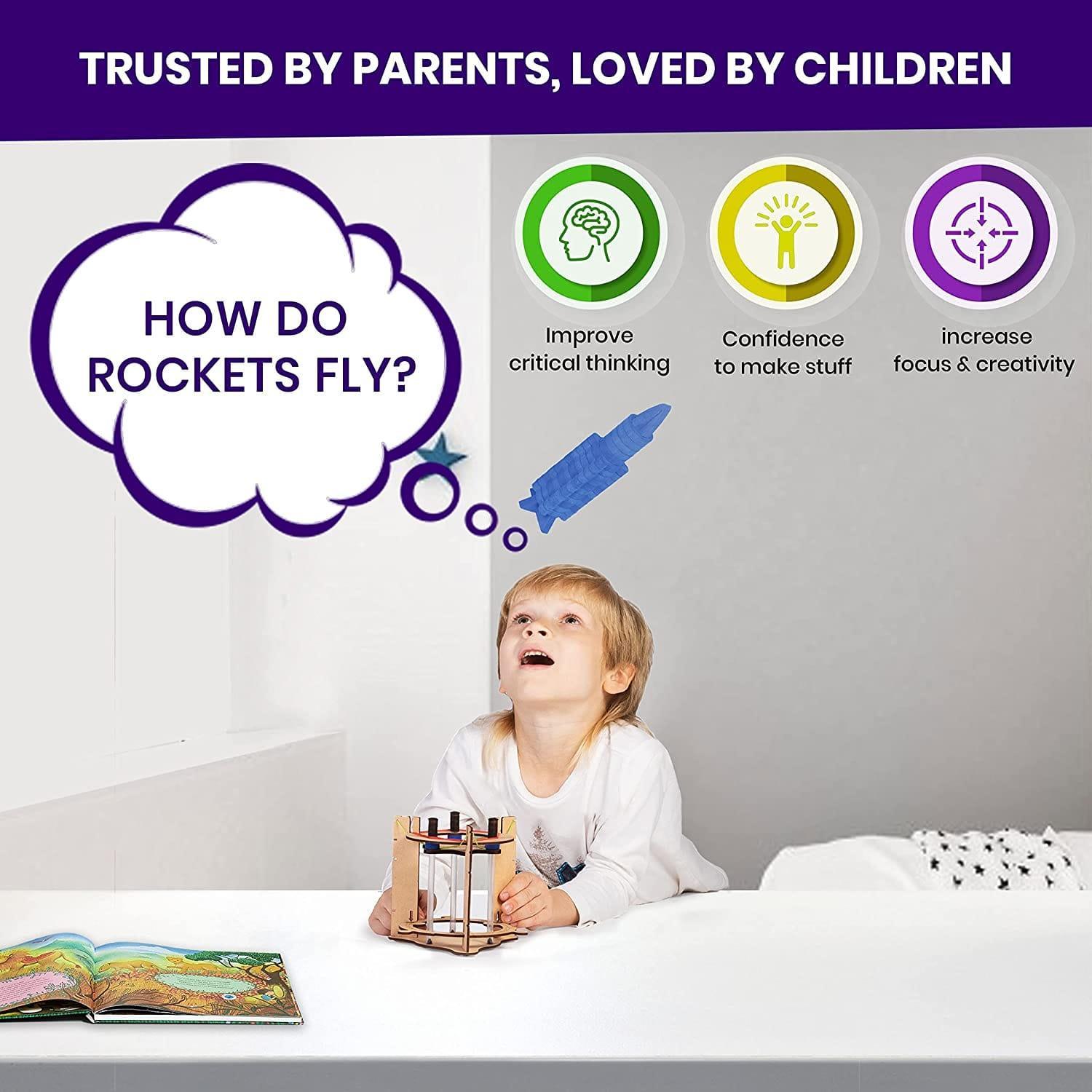 Smartivity Space Rocket 3D Wooden Model Engineering STEM Building Toy for Kids Ages 6 and Up, Foam Rocket Parts, Rubber Bands, Engineered Wood Components & Instruction Manual