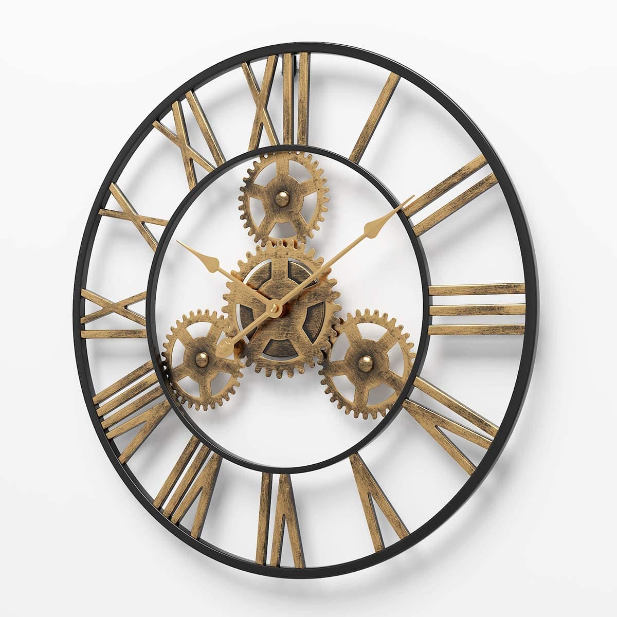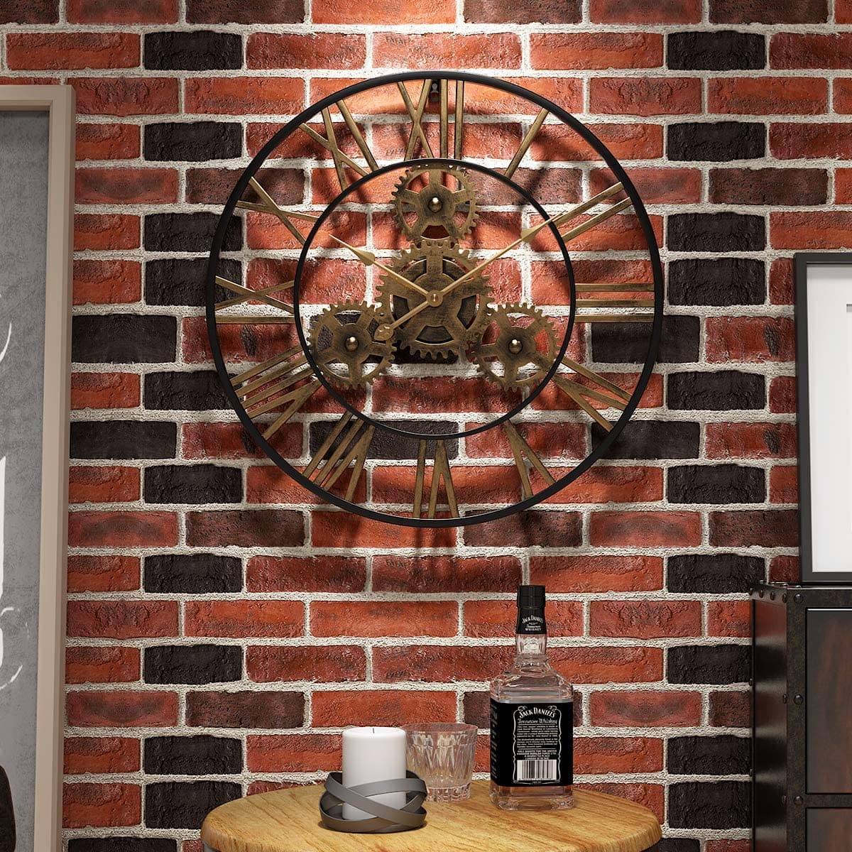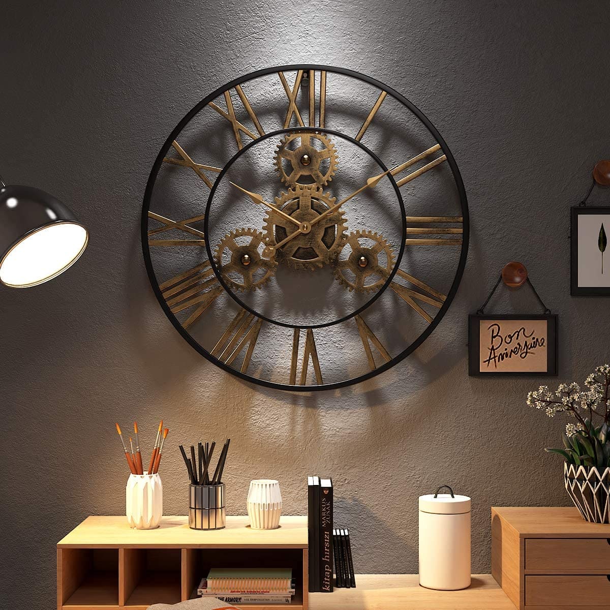 SND Home Decor Large Gear Wall Clock – Oversized 3D Steampunk Roman Numeral Wall Clock – Silent Retro Rustic Country Decorative Wall Clock for Living Room, Dining Room, Home, Farmhouse – Gold Black (60cm)
