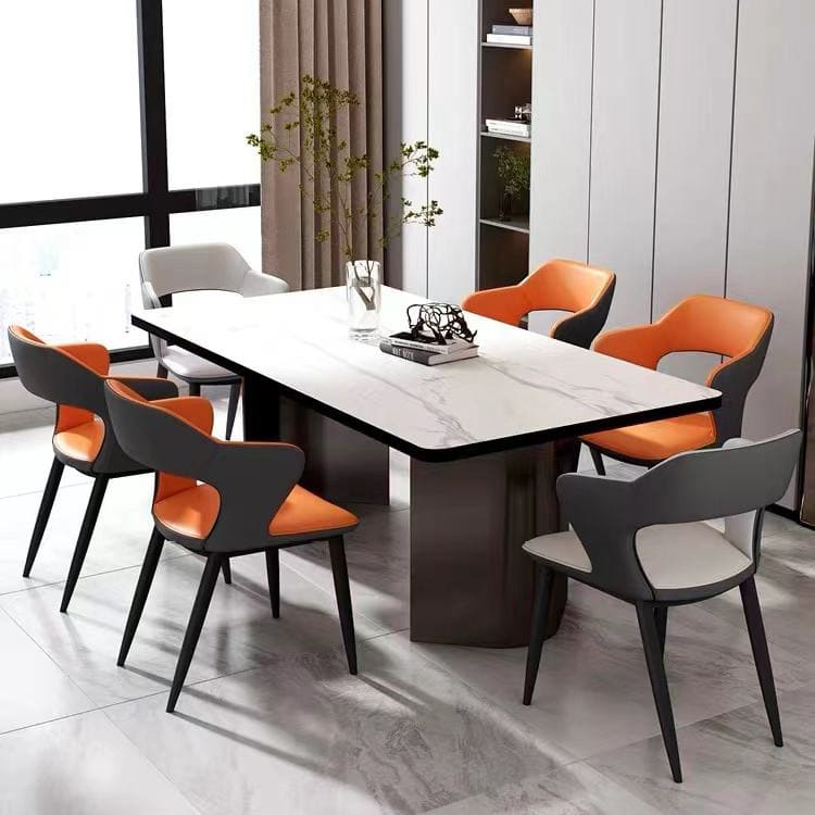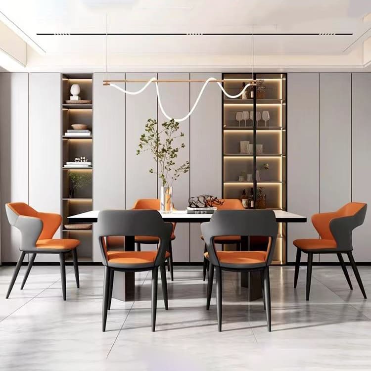 SND HOME Chair for Dining Room, Dining Room Table, Modern Dining Chair with Arms, Washable Pu Cushion Seat Back for Living Room, Upholstered Armchair Bedroom Kitchen Waiting Room (Dark Orange)