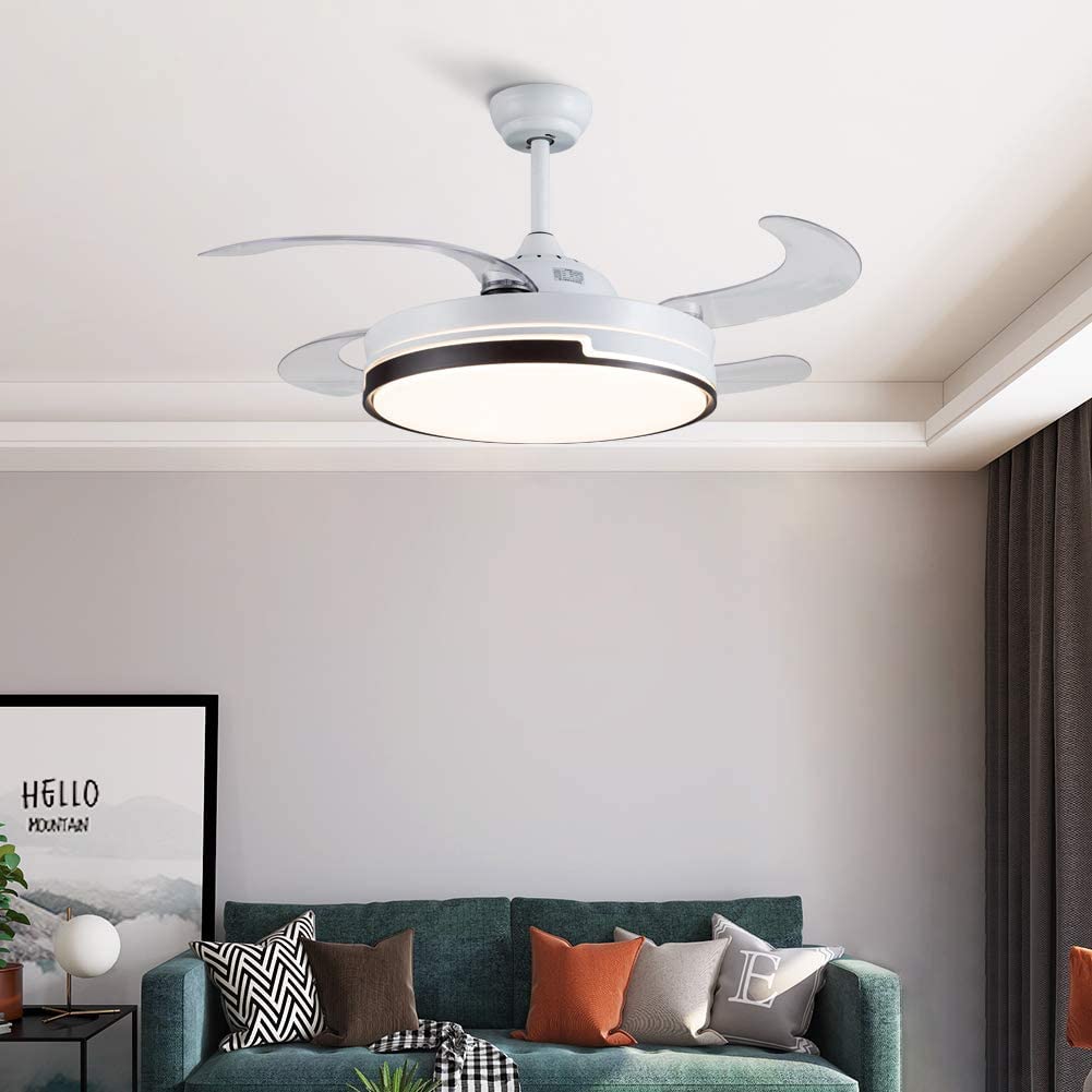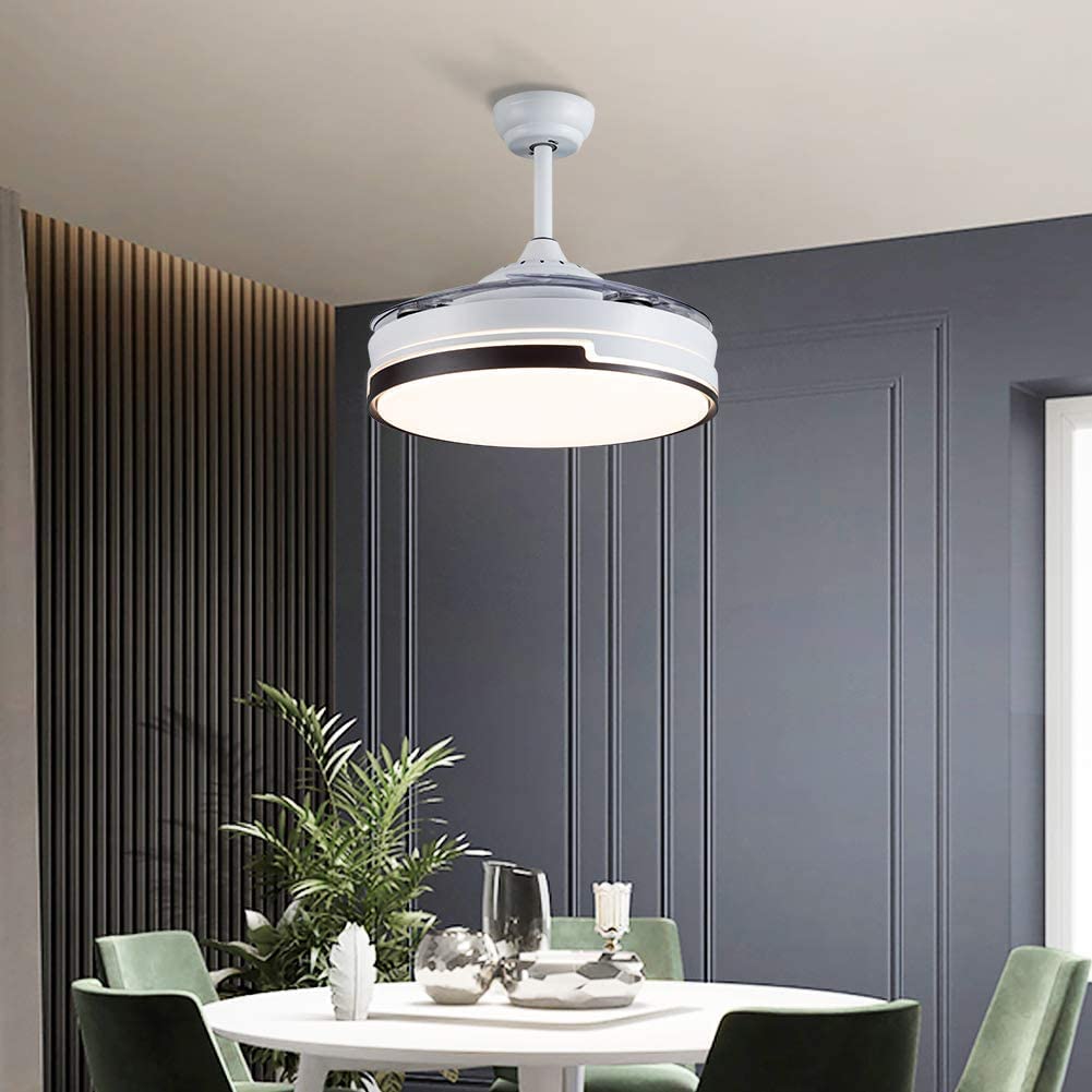 SND Home Decor Elegance Ceiling Fan with Light, Modern Invisible Ceiling Fan Chandelier with Retractable Blade, Dimmable LED 3 Lighting 3 Speeds Change Ceiling Fans lights with Remote Control (Available Size – 48in)