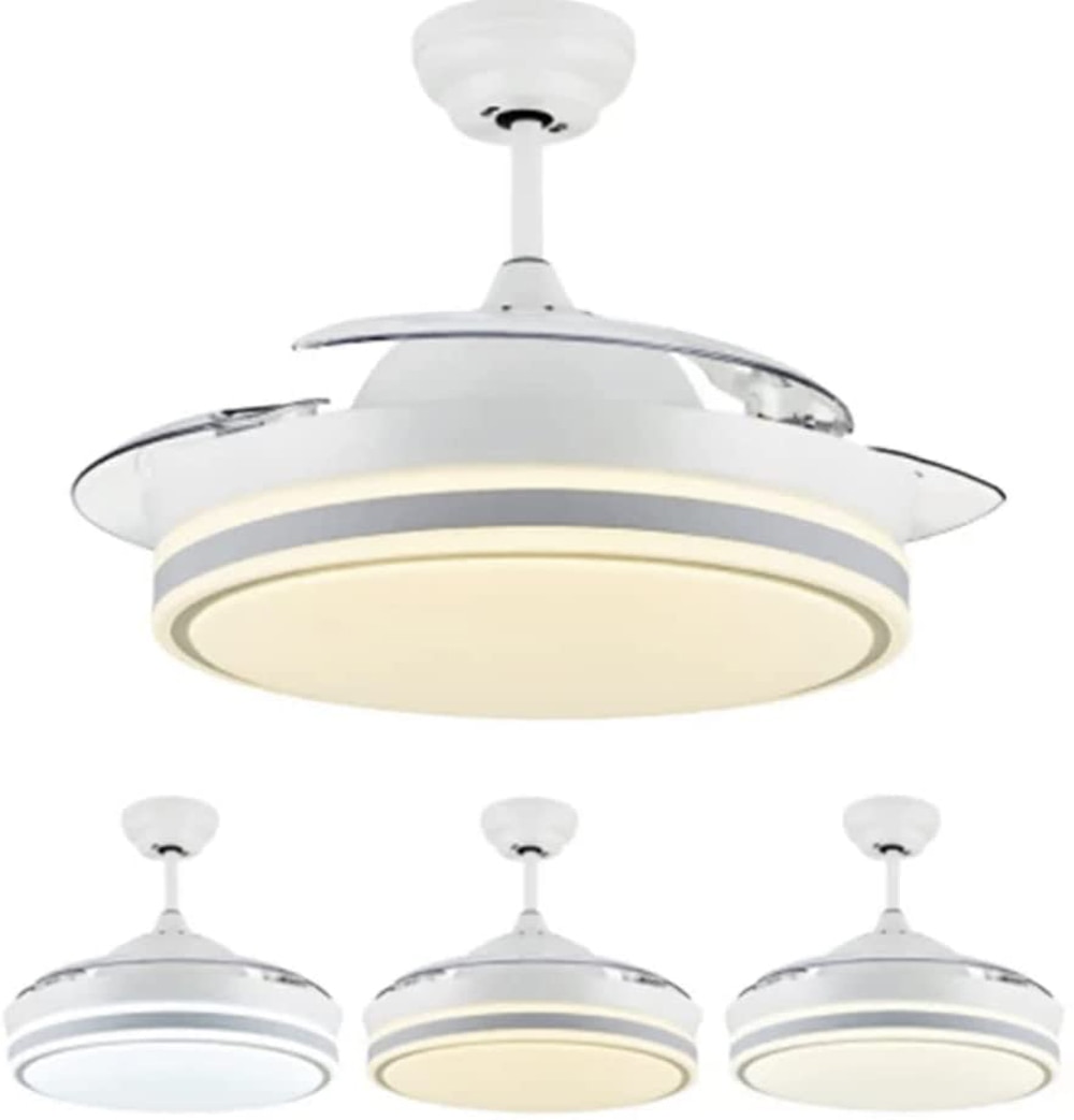SND Home Decor Elegant White Ceiling Fan with Light, Modern Invisible Ceiling Fan Chandelier with Retractable Blade, Dimmable LED 3 Lighting 3 Speeds Change Ceiling Fans lights with Remote Control (Available Size – 36in)