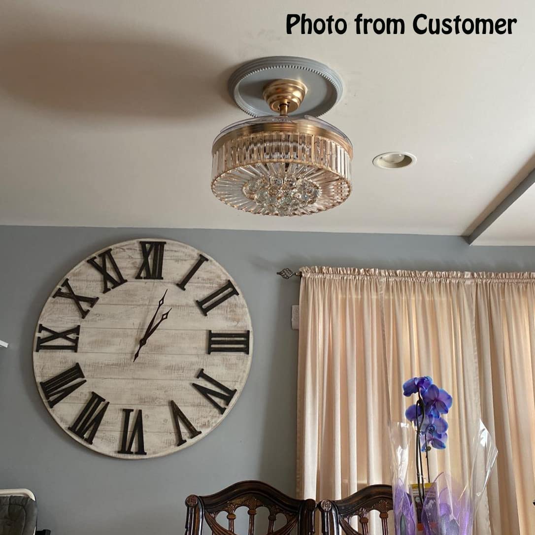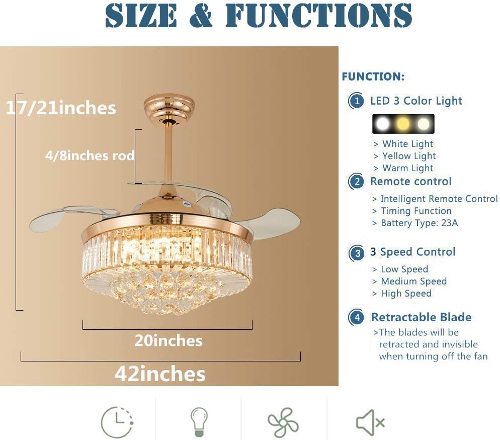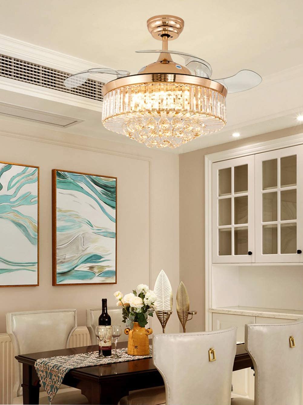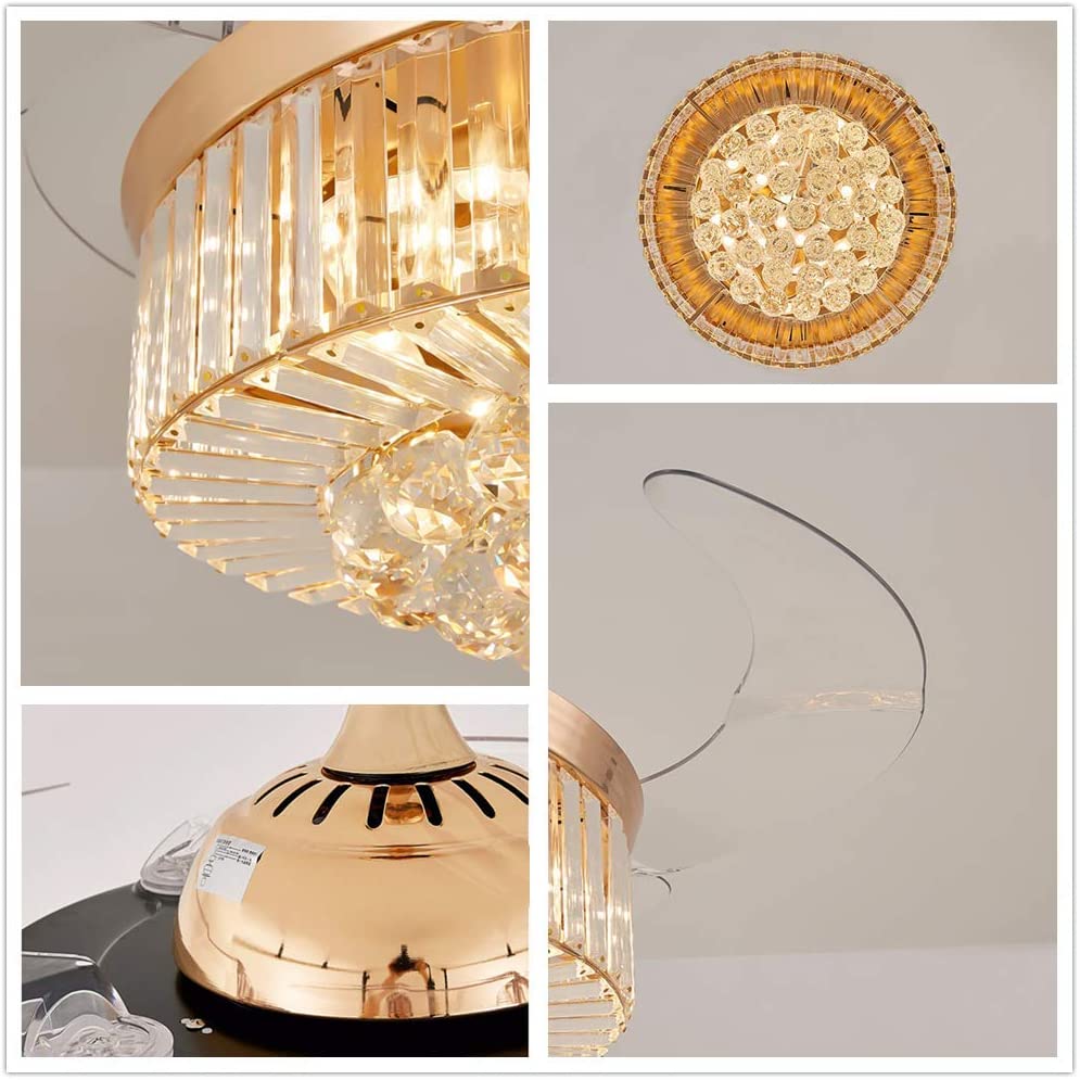 SND Home Decor Luxury Crystal Ceiling Fan with Light Remote Control Retractable Blades Lighting Fixtures 3 Speeds 3 Color Changes Luxury Chandelier , Silent Motor With LED Bulbs Included (Gold | 48inch)