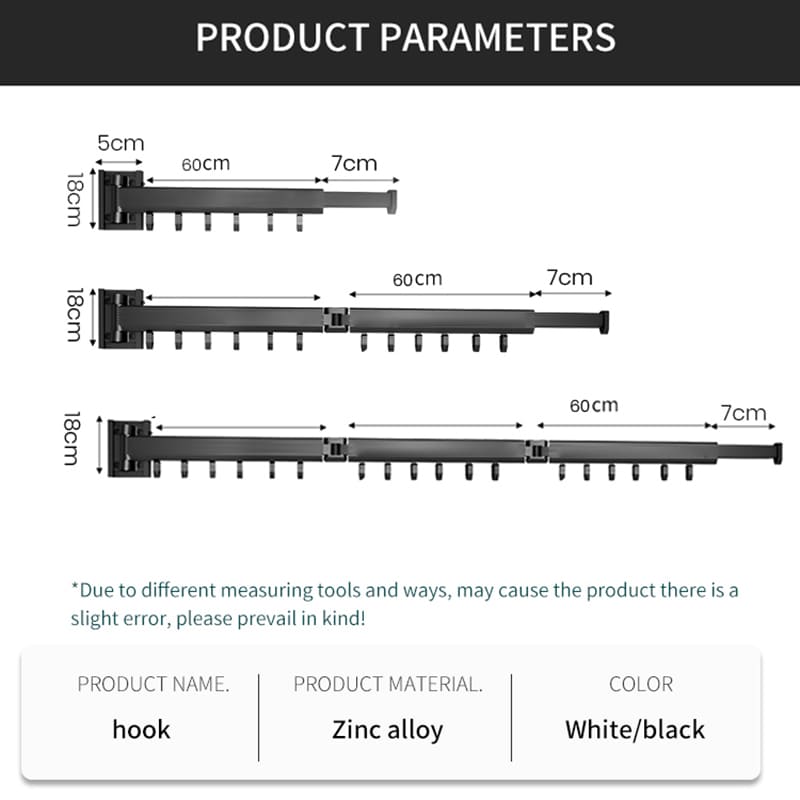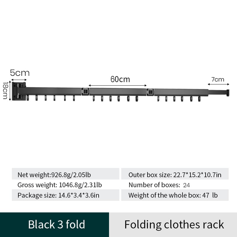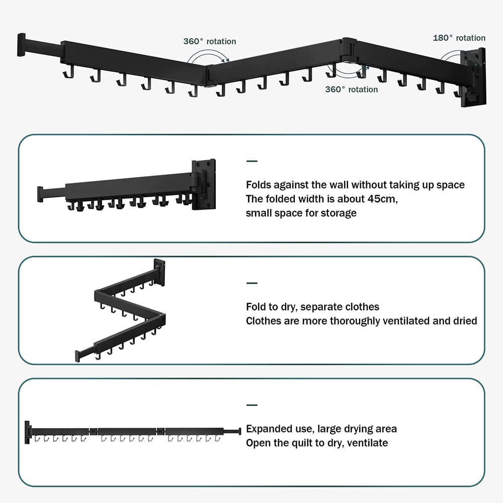 SND Home Wall Mounted Folding Clothes Drying Rack, Collapsible and Retractable Space Saver Heavy Duty Laundry Drying Rack with Towel Bar (Black | 1.97M)
