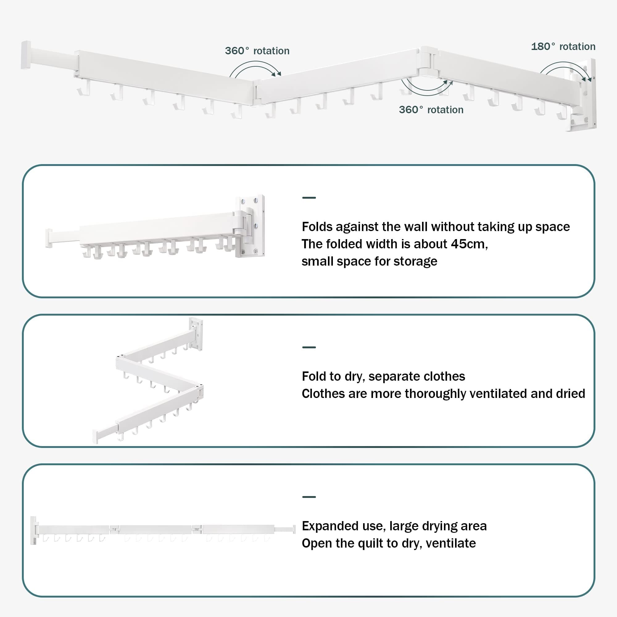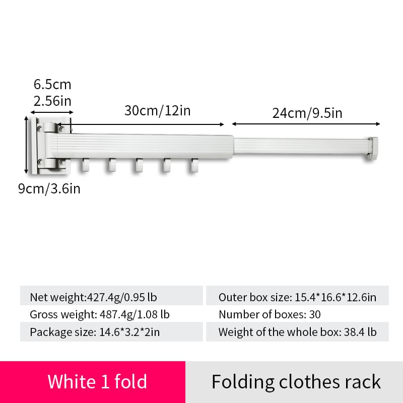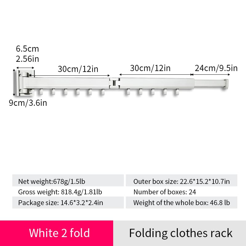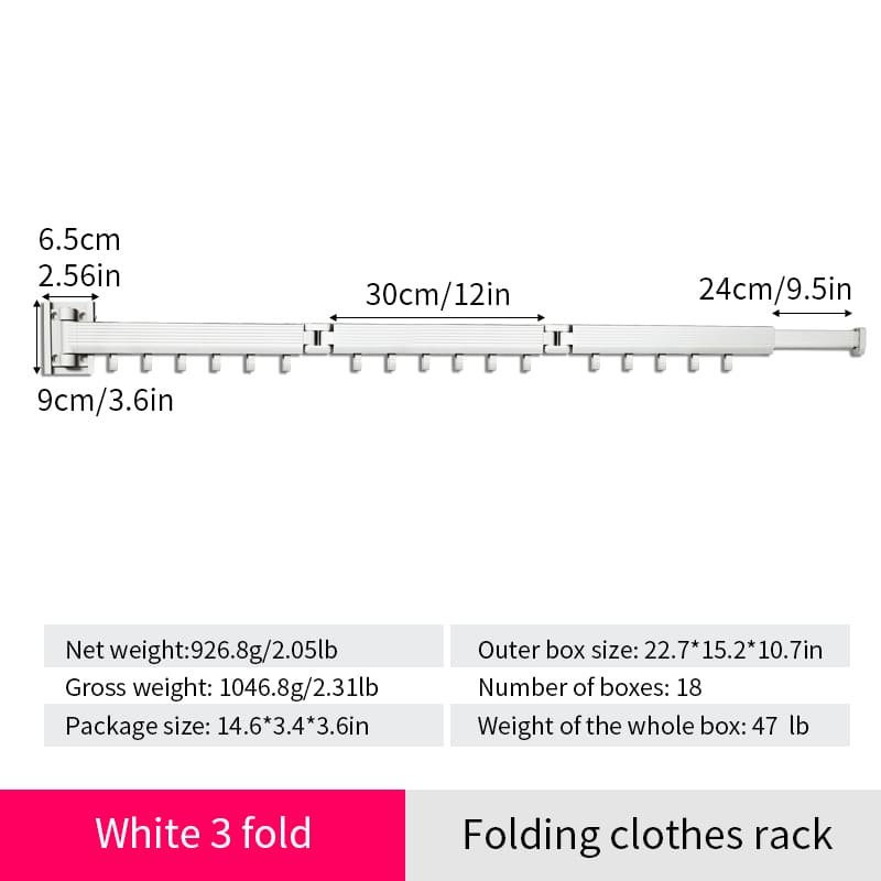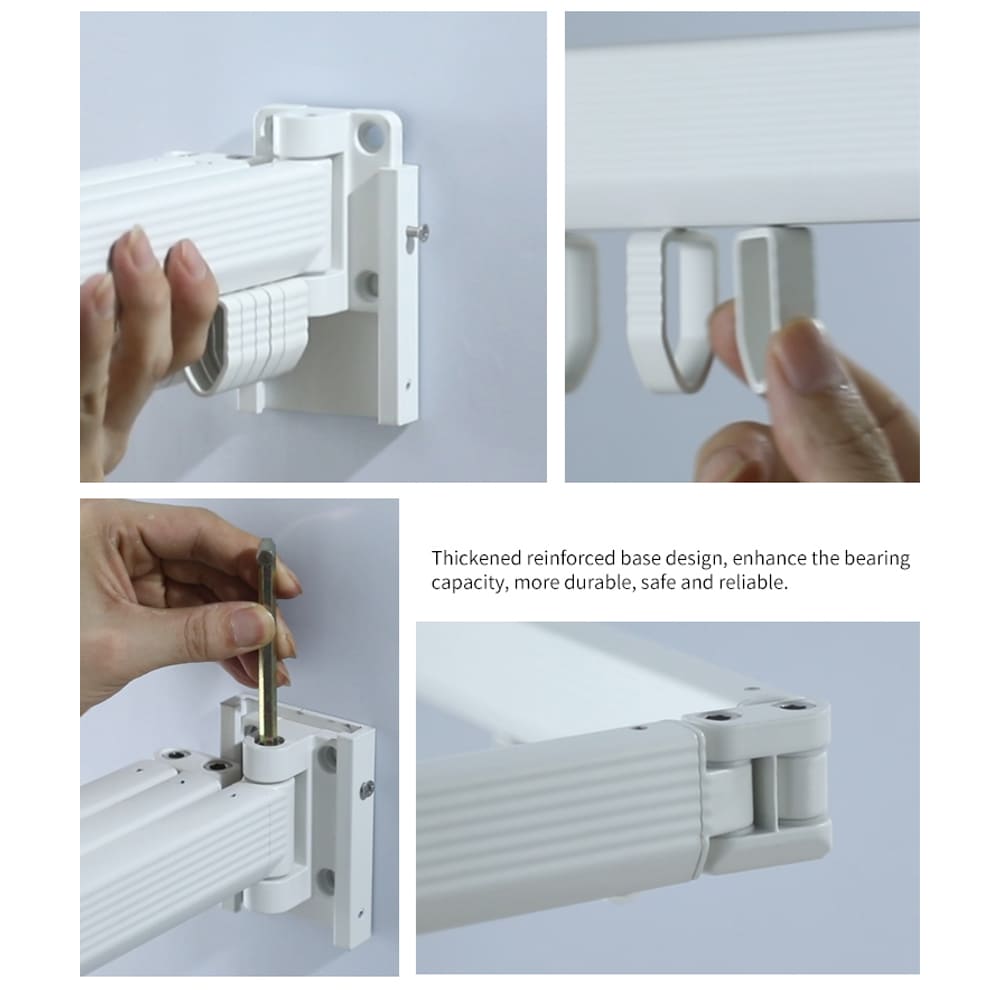 SND Home Wall Mounted Folding Clothes Drying Rack, Collapsible and Retractable Space Saver Heavy Duty Laundry Drying Rack with Towel Bar (White)