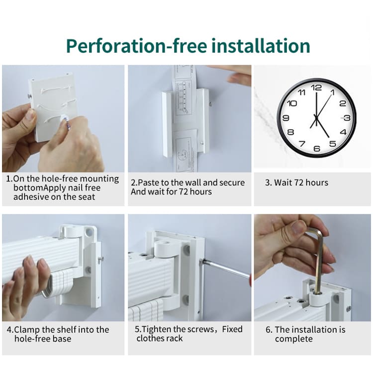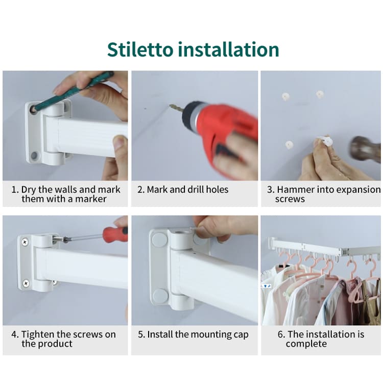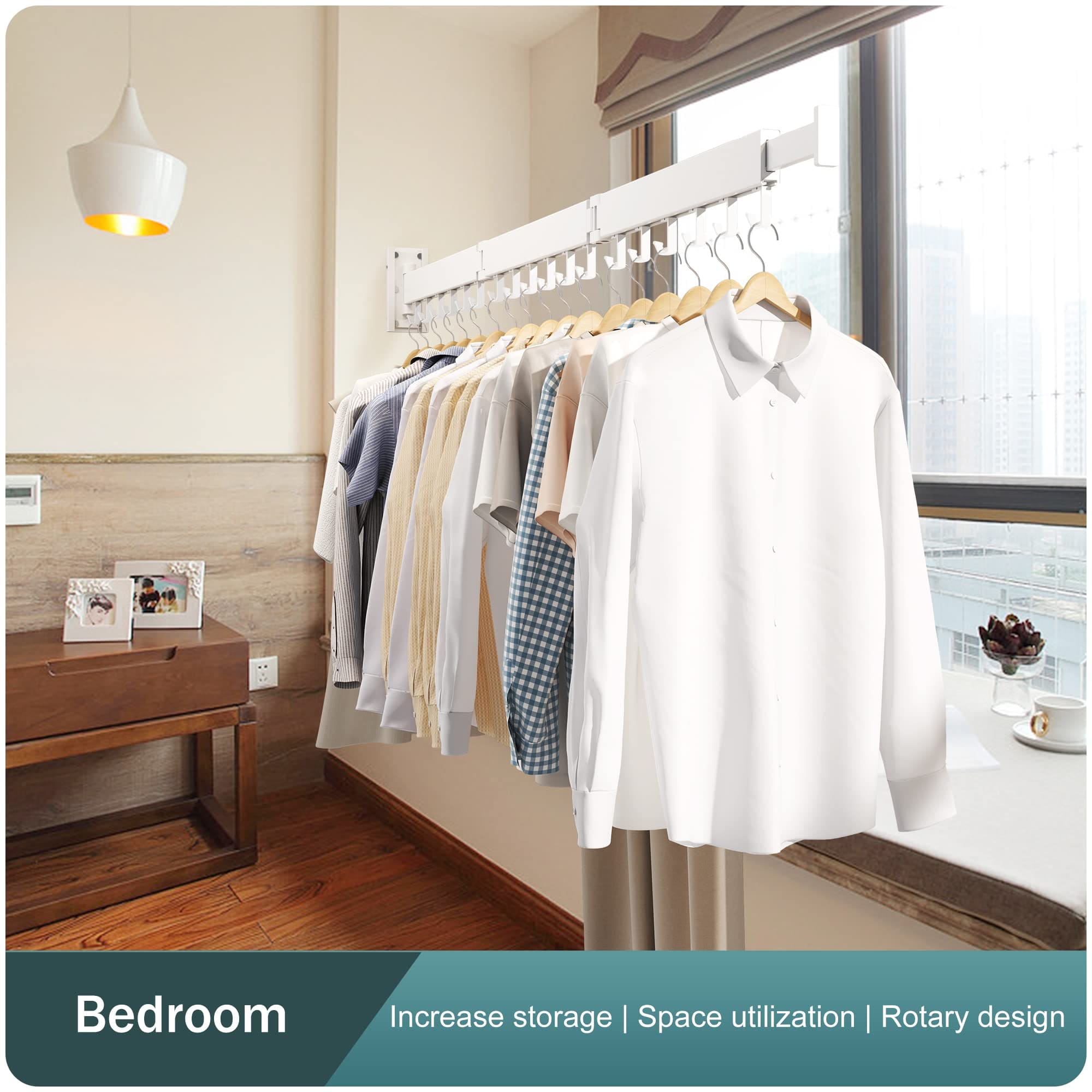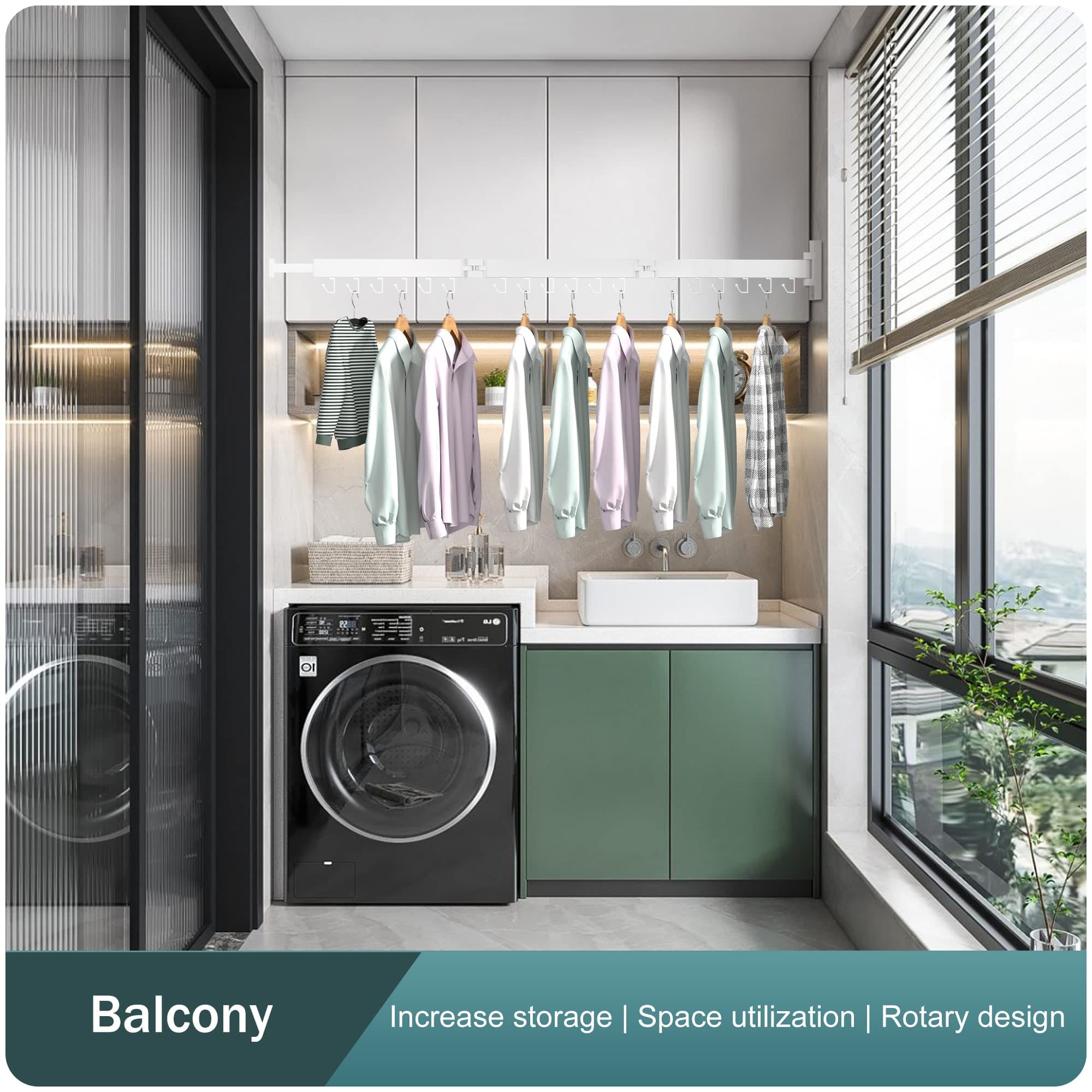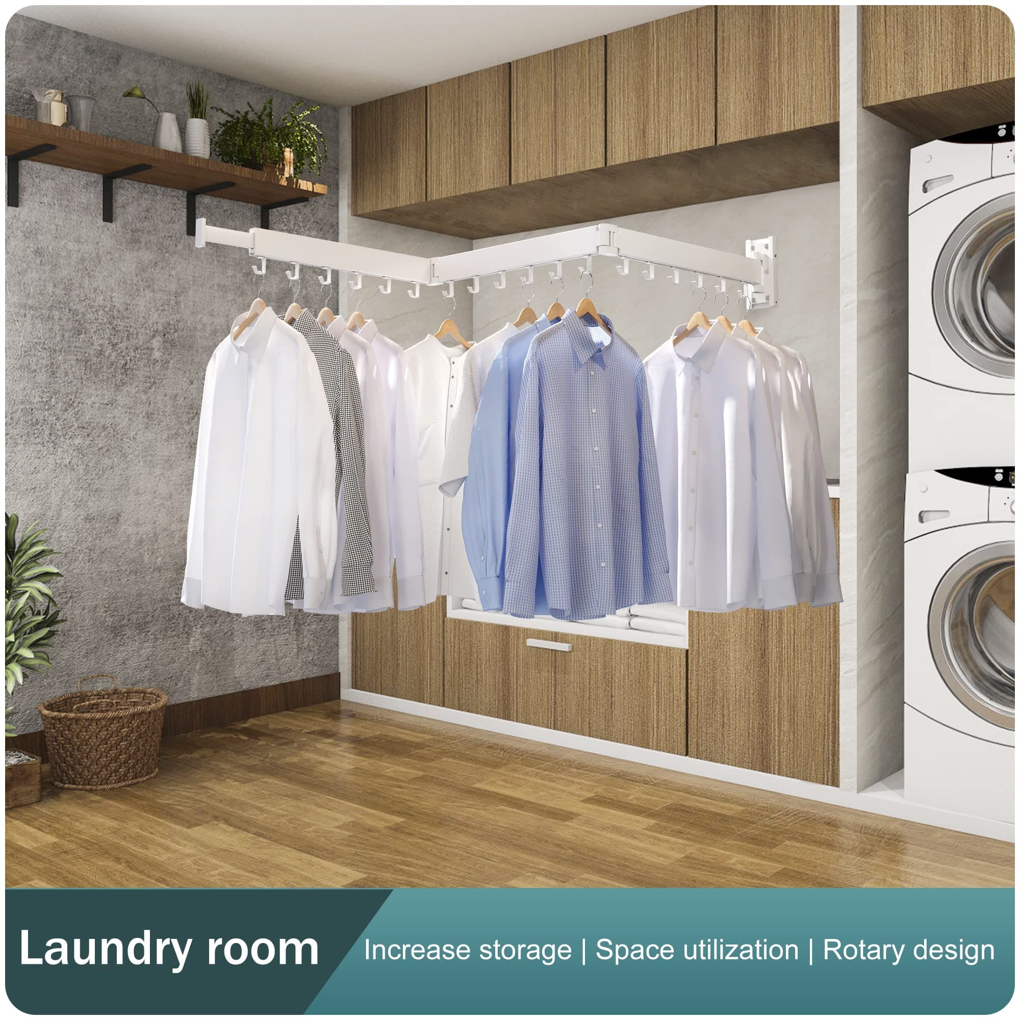 SND Home Wall Mounted Folding Clothes Drying Rack, Collapsible and Retractable Space Saver Heavy Duty Laundry Drying Rack with Towel Bar (White)