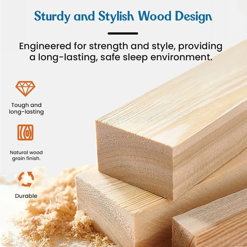 Made with Pine Wood Material: Prepared from premium pine wood, this double-decker bunk bed gives outstanding durability and a smooth finish, ensuring longevity while providing a natural, elegant look that complements any room decor.