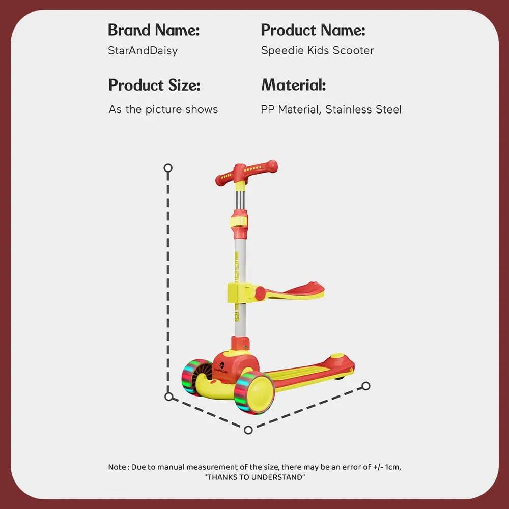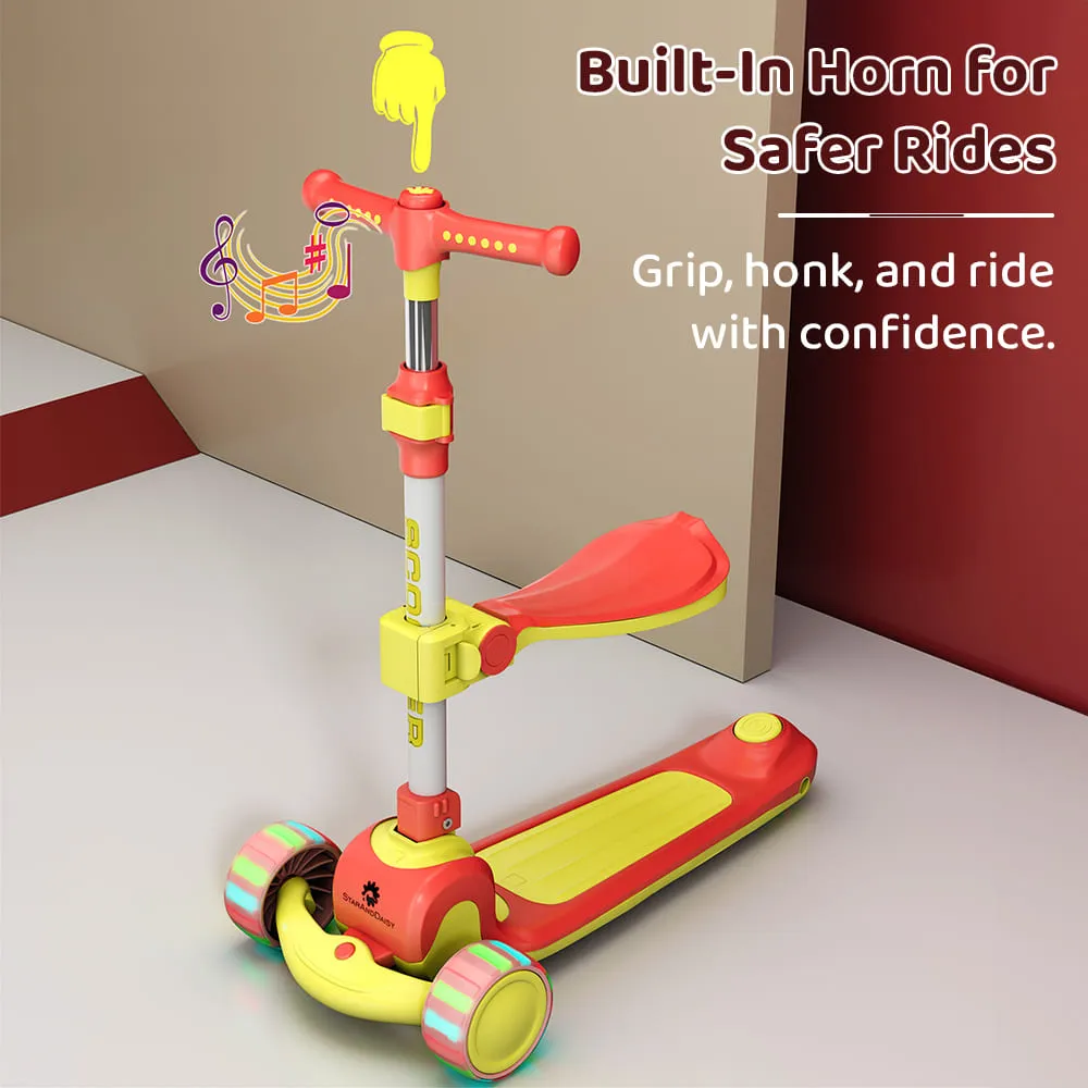 StarAndDaisy Speedie 3 Wheel Kids Scooters with Seat, Height Adjustment & Foot Brake, RGB Wheel Lights Scooter for Kids – (Pink & Yellow)