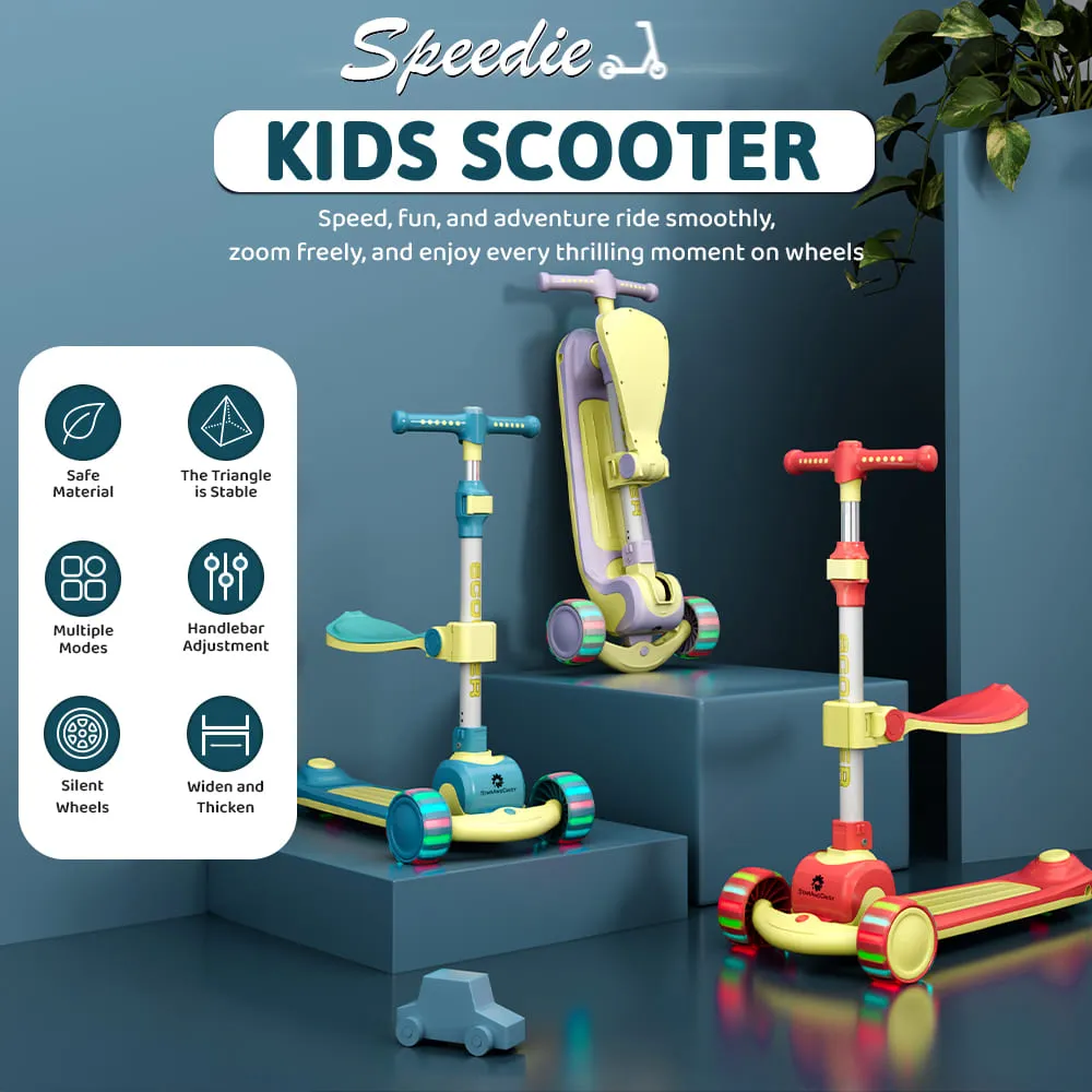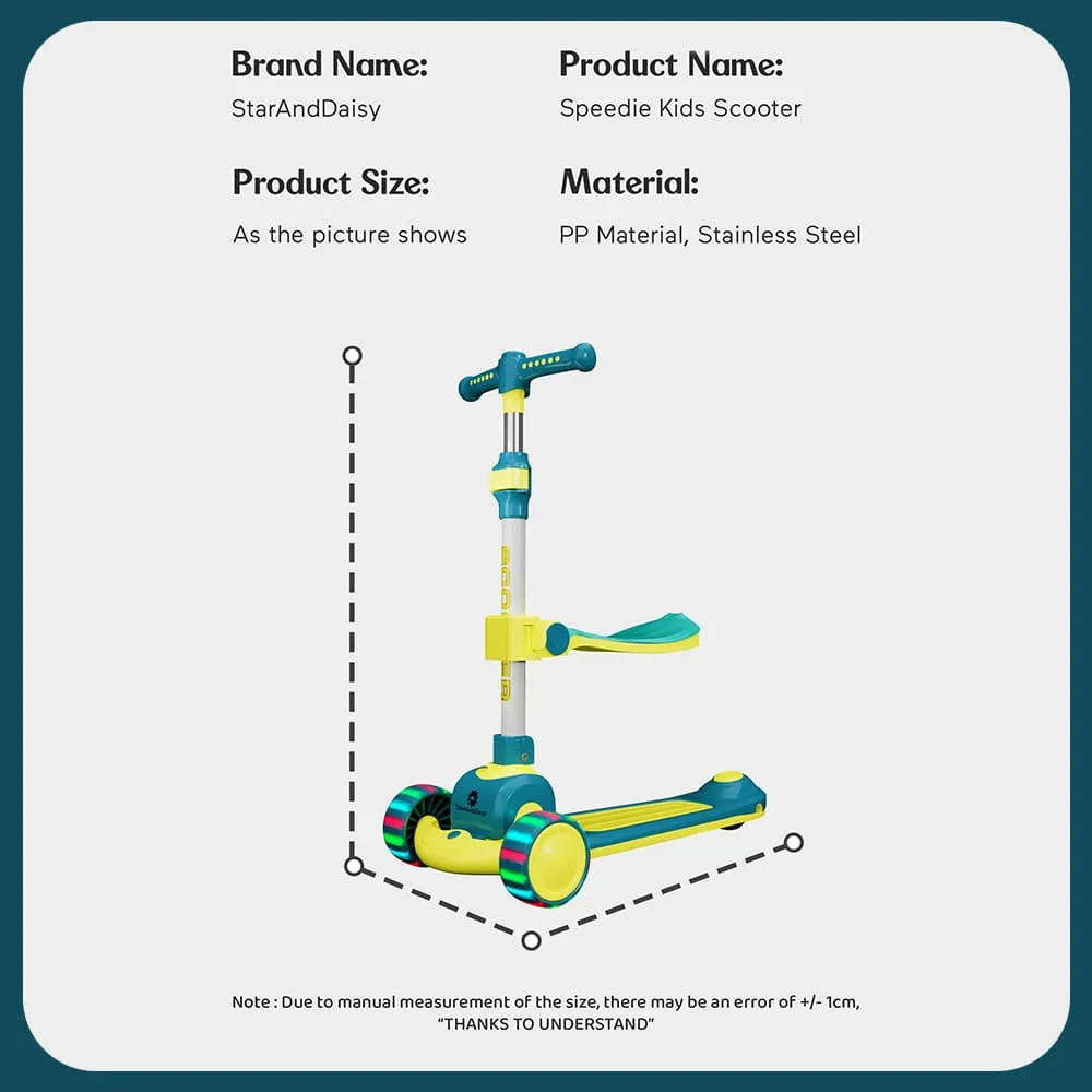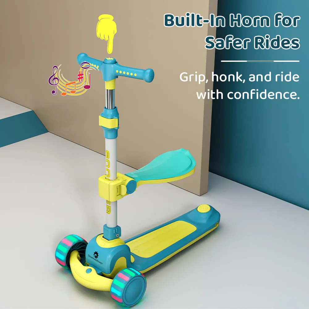 StarAndDaisy Speedie Kids Scooters with Seat, Height Adjustment & Foot Brake, RGB Wheel Lights Scooter for Kids – (Pink & Yellow)