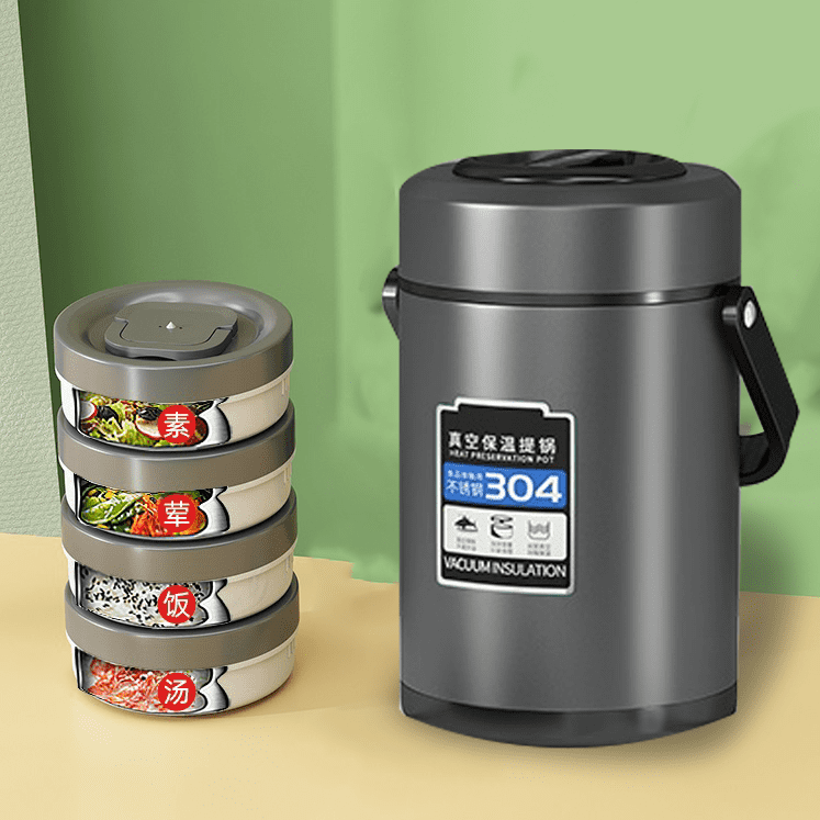 Stainless Dining Lunch Box – 3-Tier Insulated Food Container, Leak Proof Microwave Safe, Full Meal and Easy to Carry Thermal Compartment Snack Box (Grey)