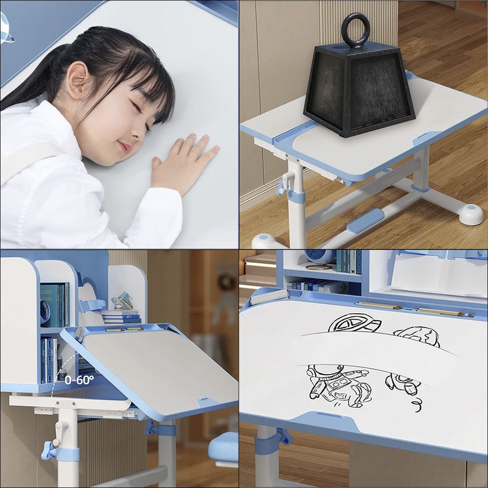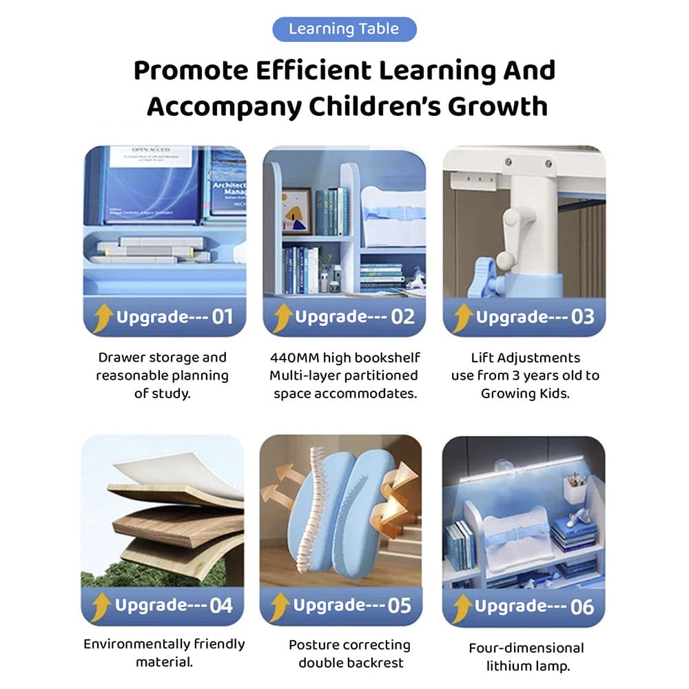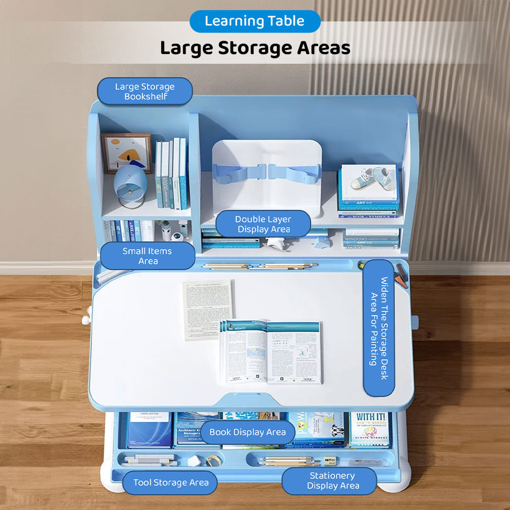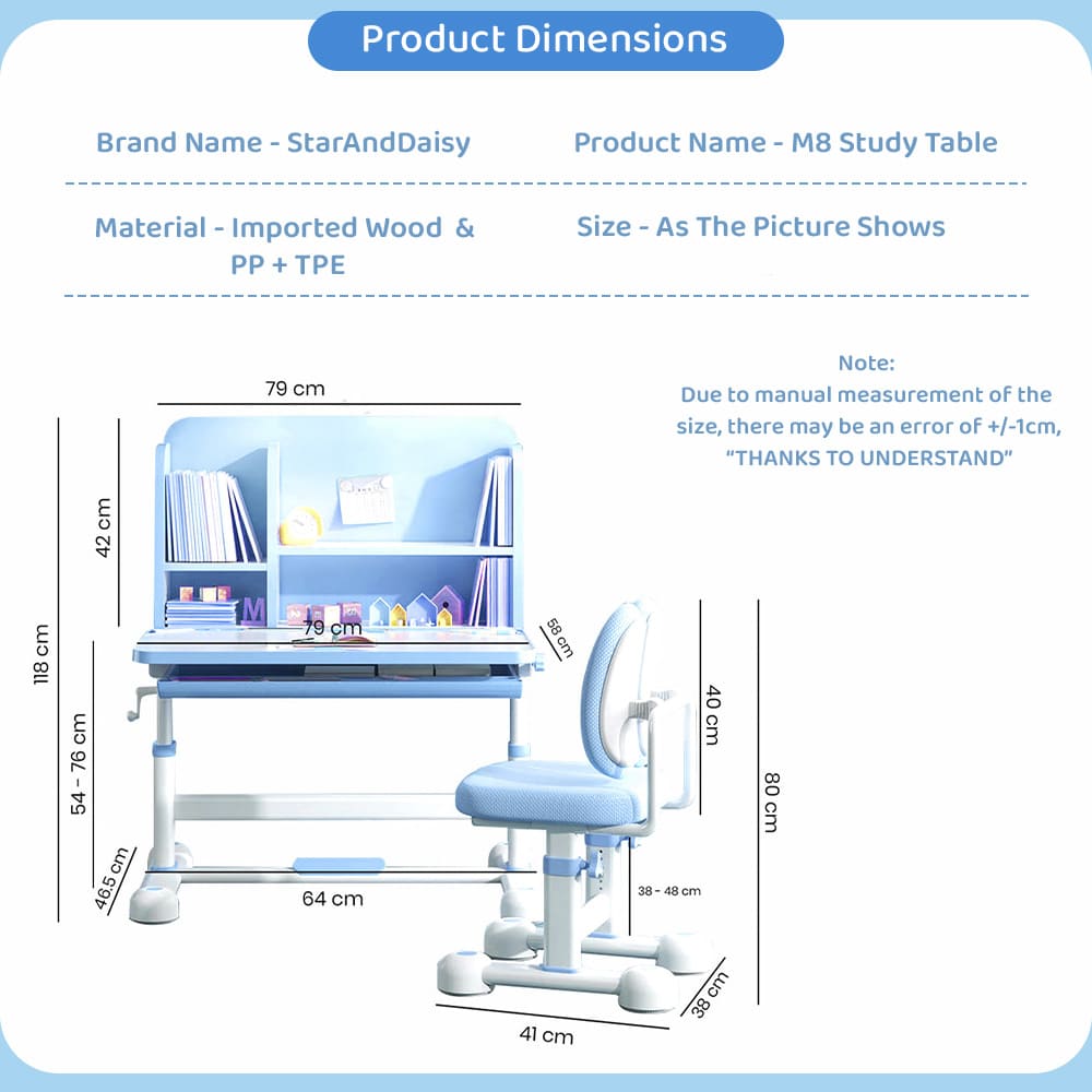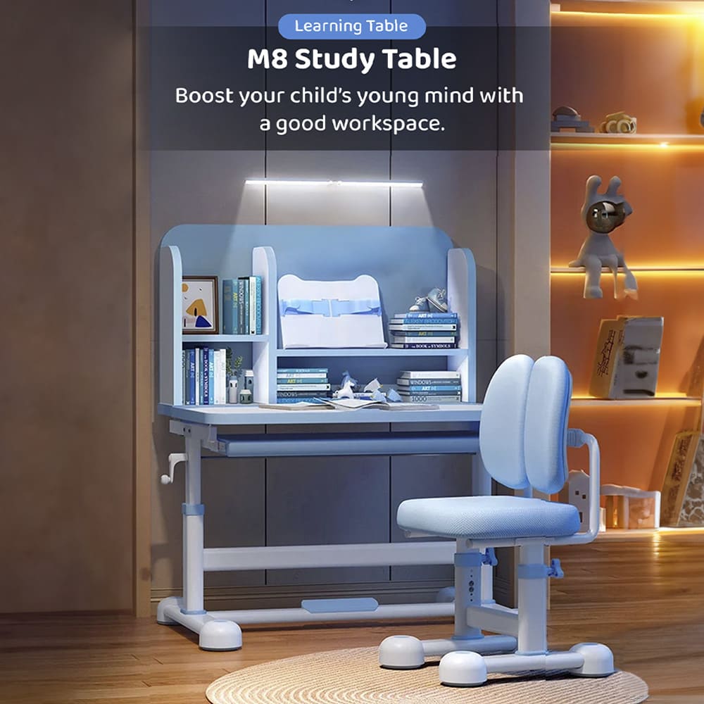 StarAndDaisy Smart Study Table with Chair for Kids and Students with Bookshelves, Storage and Height Adjustment (Blue | M8)