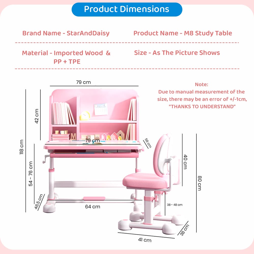 StarAndDaisy Kids Study Table and Chair with Bookshelves, Storage and Height Adjustable (Pink | M8)