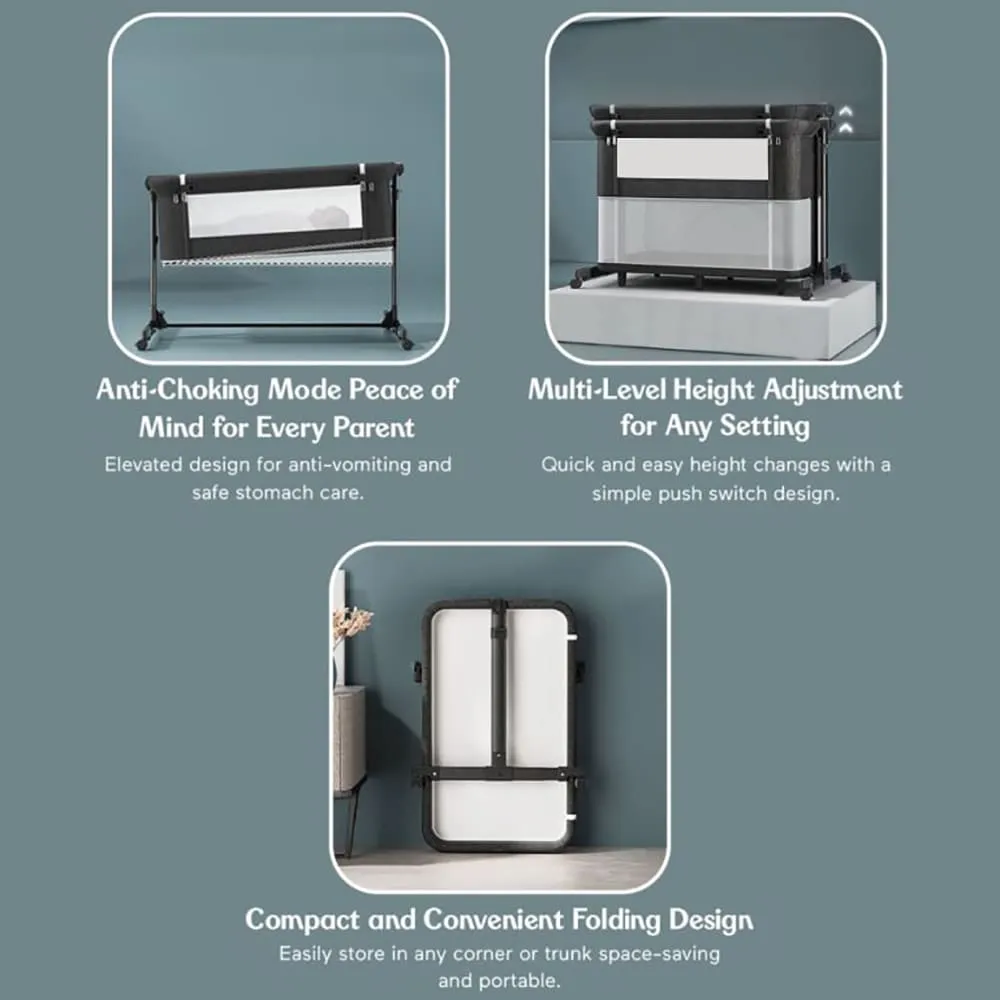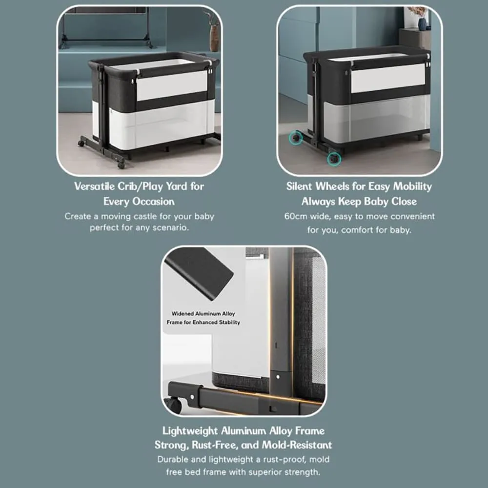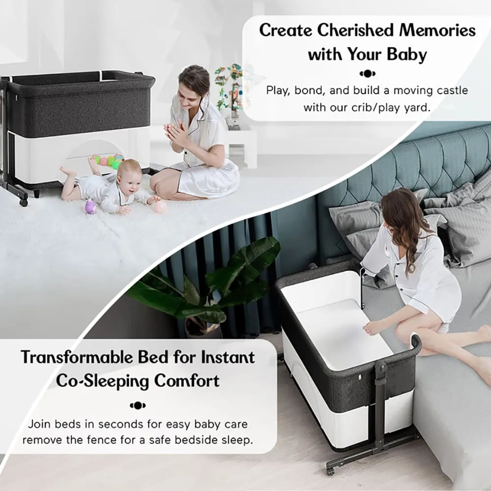 It can be used right away like a bassinet or converted easily into a crib with the Baby Playpen/ Playard Mode function. Making it easy for parents to share sleeping and feeding times while keeping their babies close by.