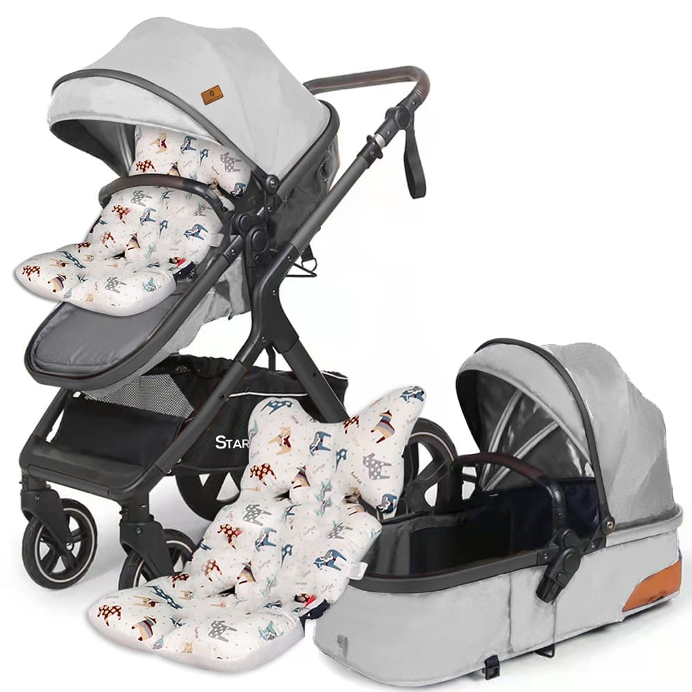 StarAndDaisy 2-in-1 EasyGo Travel Friendly Luxury Baby Stroller Pram Buggy Pushchair For Baby with Extraordinary Features, Sleeping Baby Stroller bassinet mode, Sit-stand Mode (High Landscape Seat, one-push folding, Powerful Shock Absorption Wheels, Convertible Bassinet Design (Grey with Black Tubes | With Cushion)
