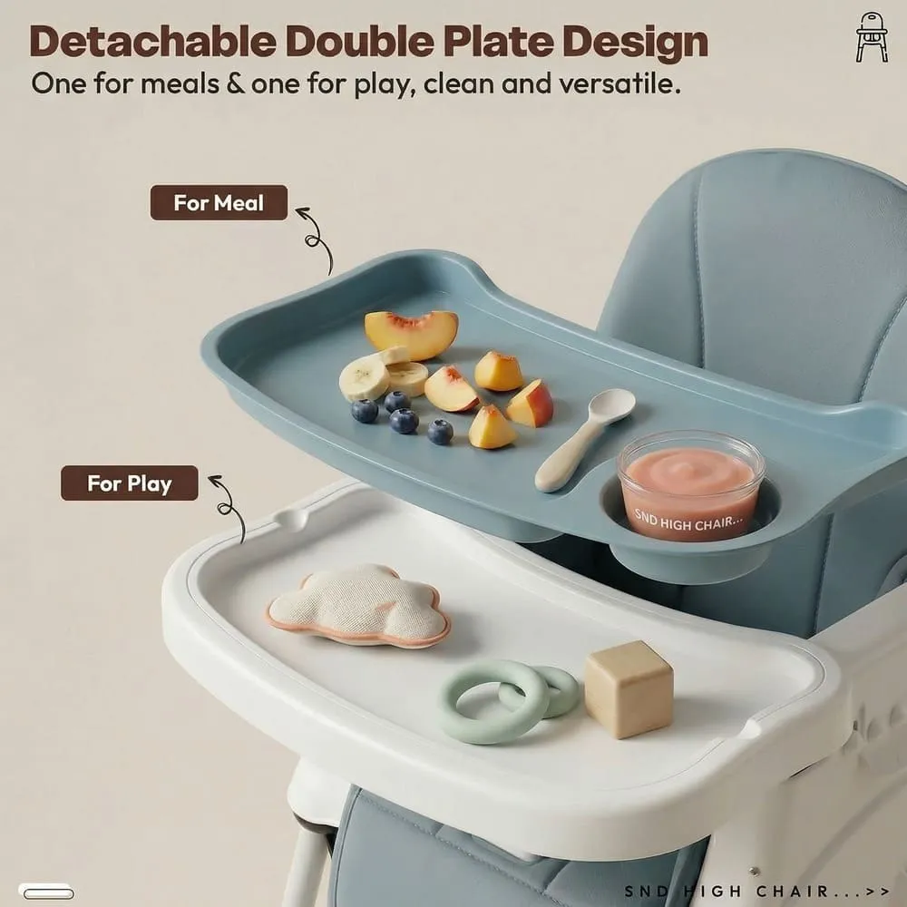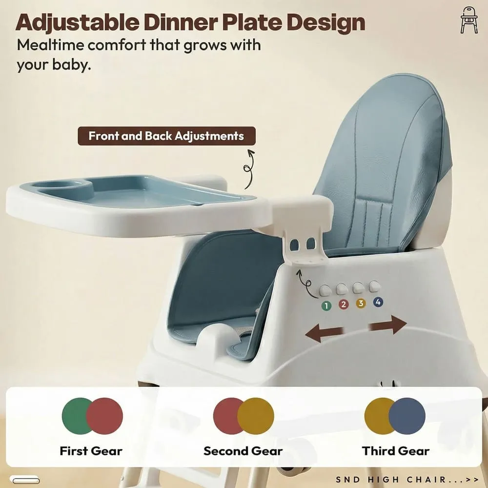 StarAndDaisy 3 in 1 Baby High Chair with Adjustable Height, Detachable Food Tray, Safety Belt and Wheels – Blue